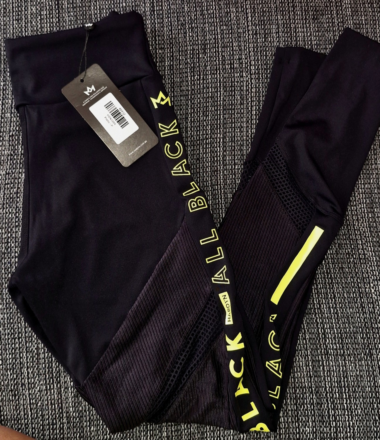 CALÇA LEGGING ALL BLACK COM RECORTES E SILK AMARELO NEON
