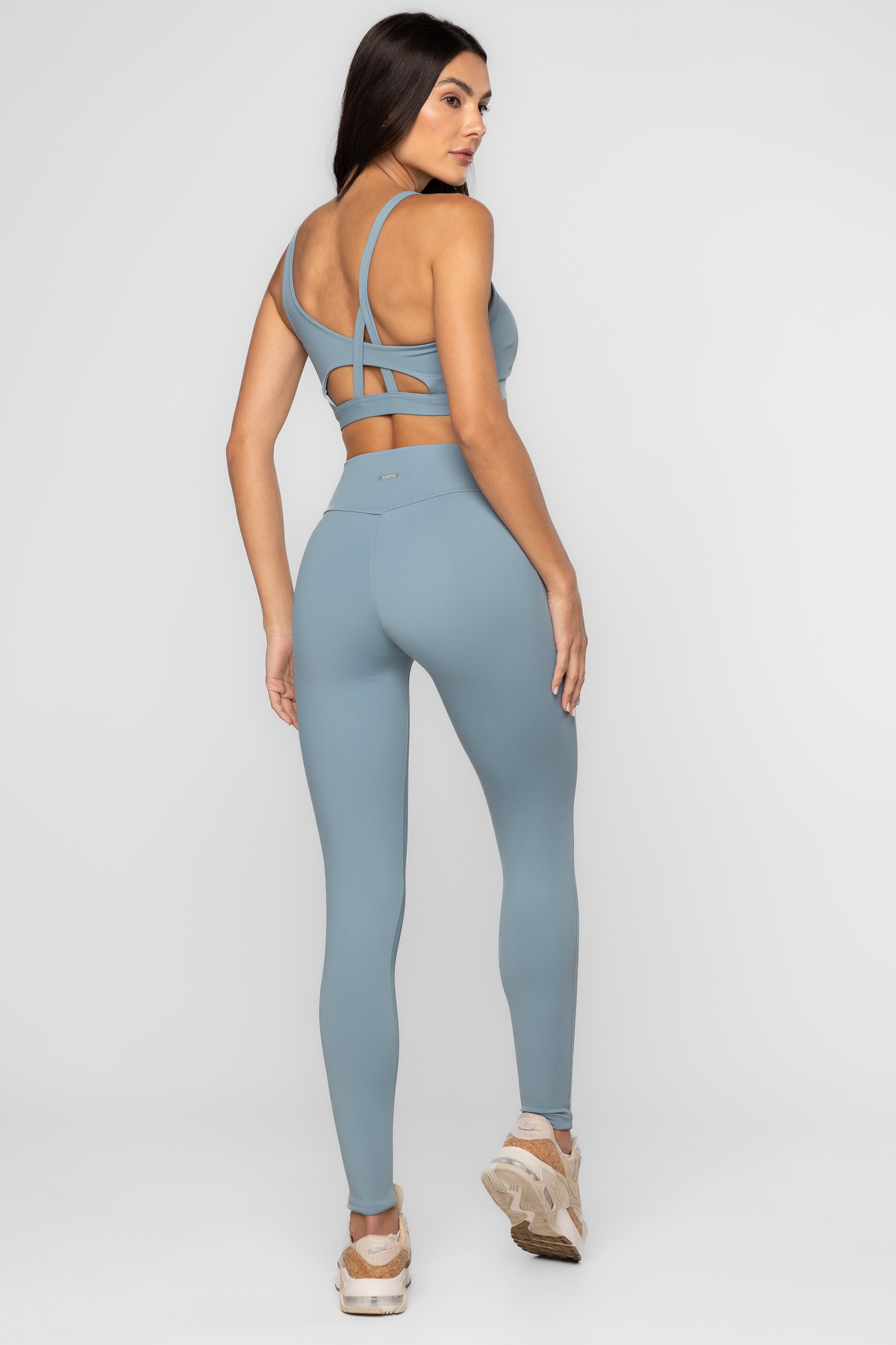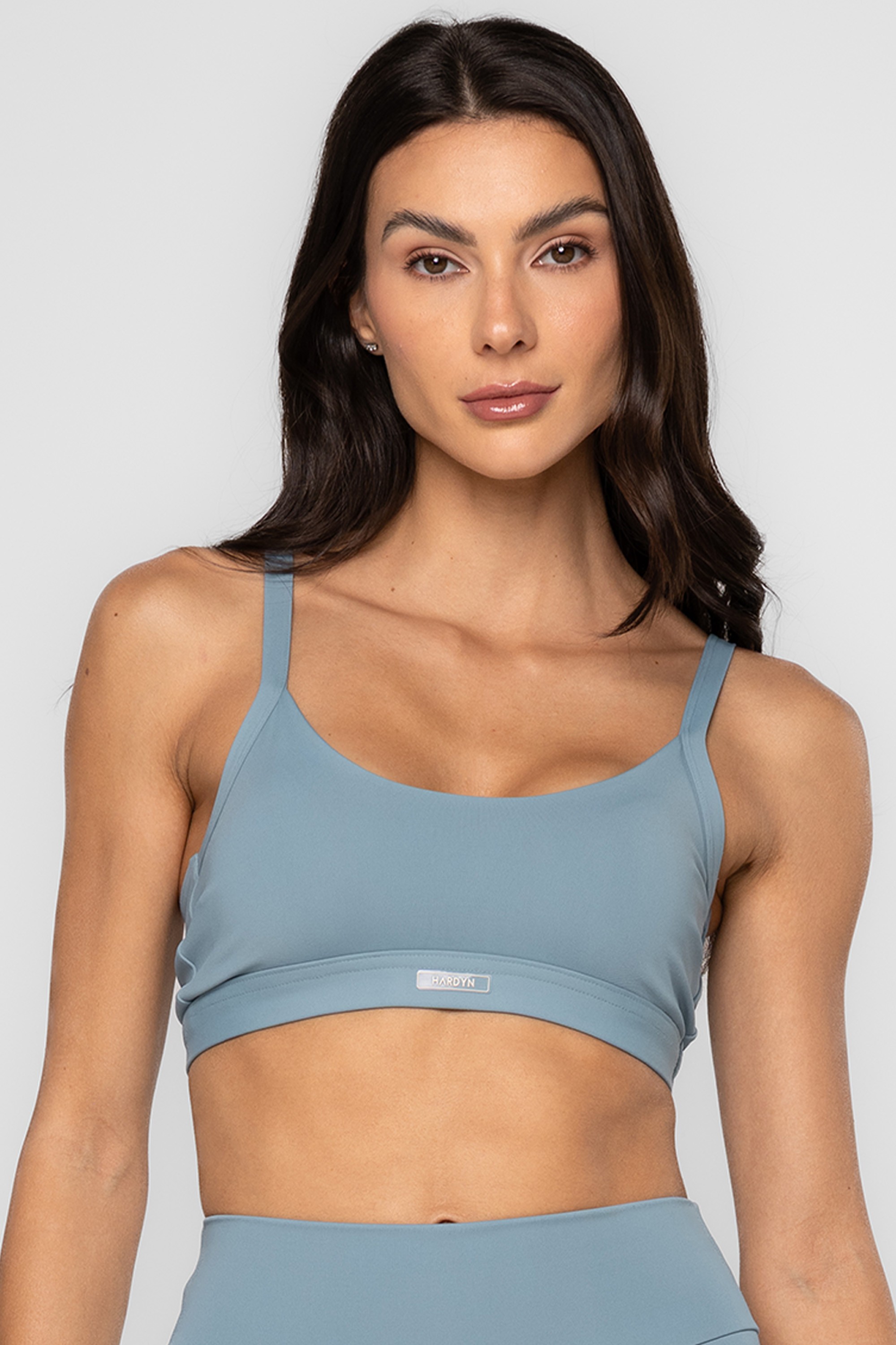 TOP AZUL CLARO EM POLIAMIDA COM ALÇAS MÉDIAS E COSTAS ASSIMÉTRICAS
