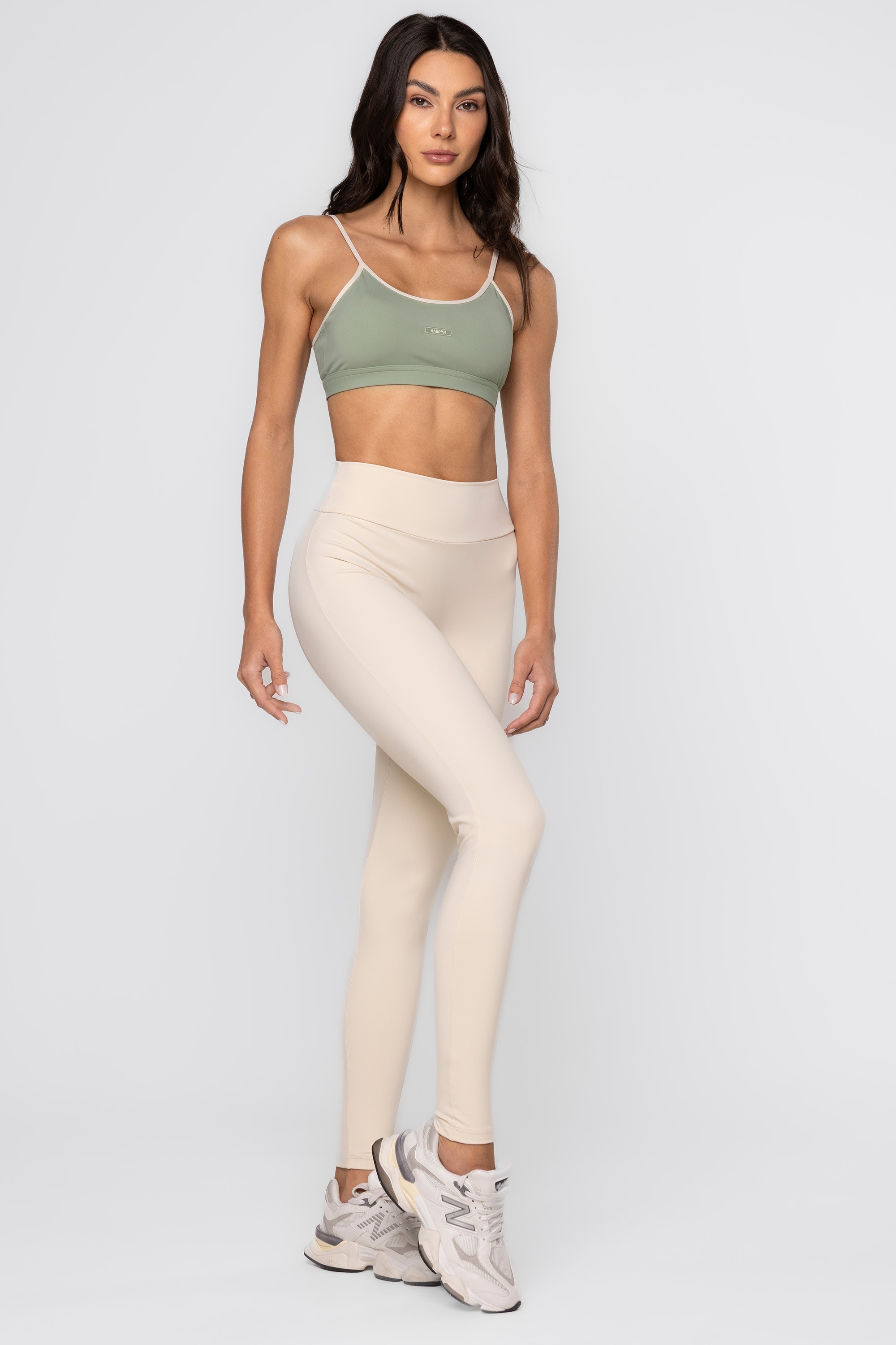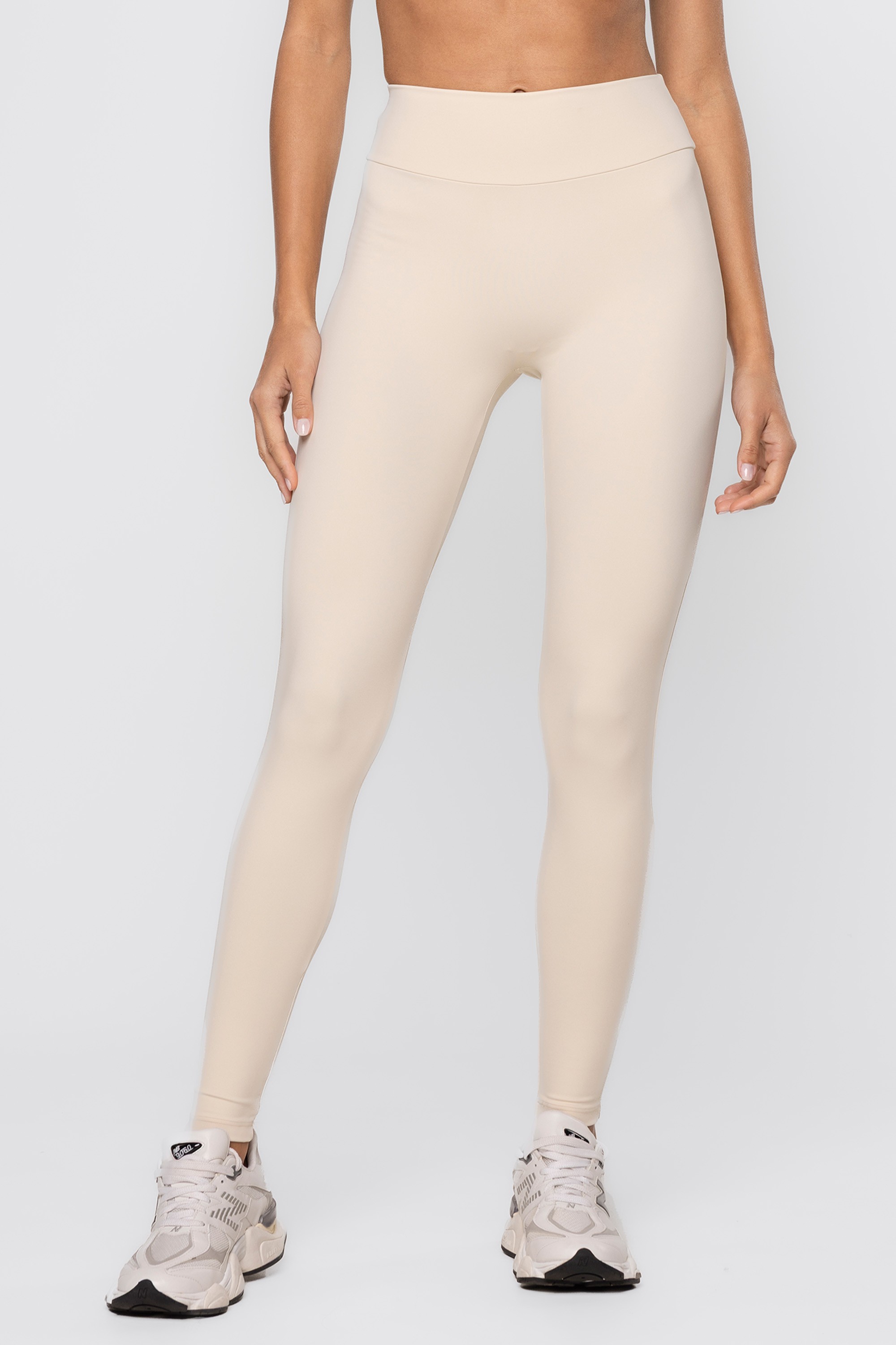 LEGGING OFF WHITE EM POLIAMIDA COM CÓS ALTO E SEM COSTURA FRONTAL