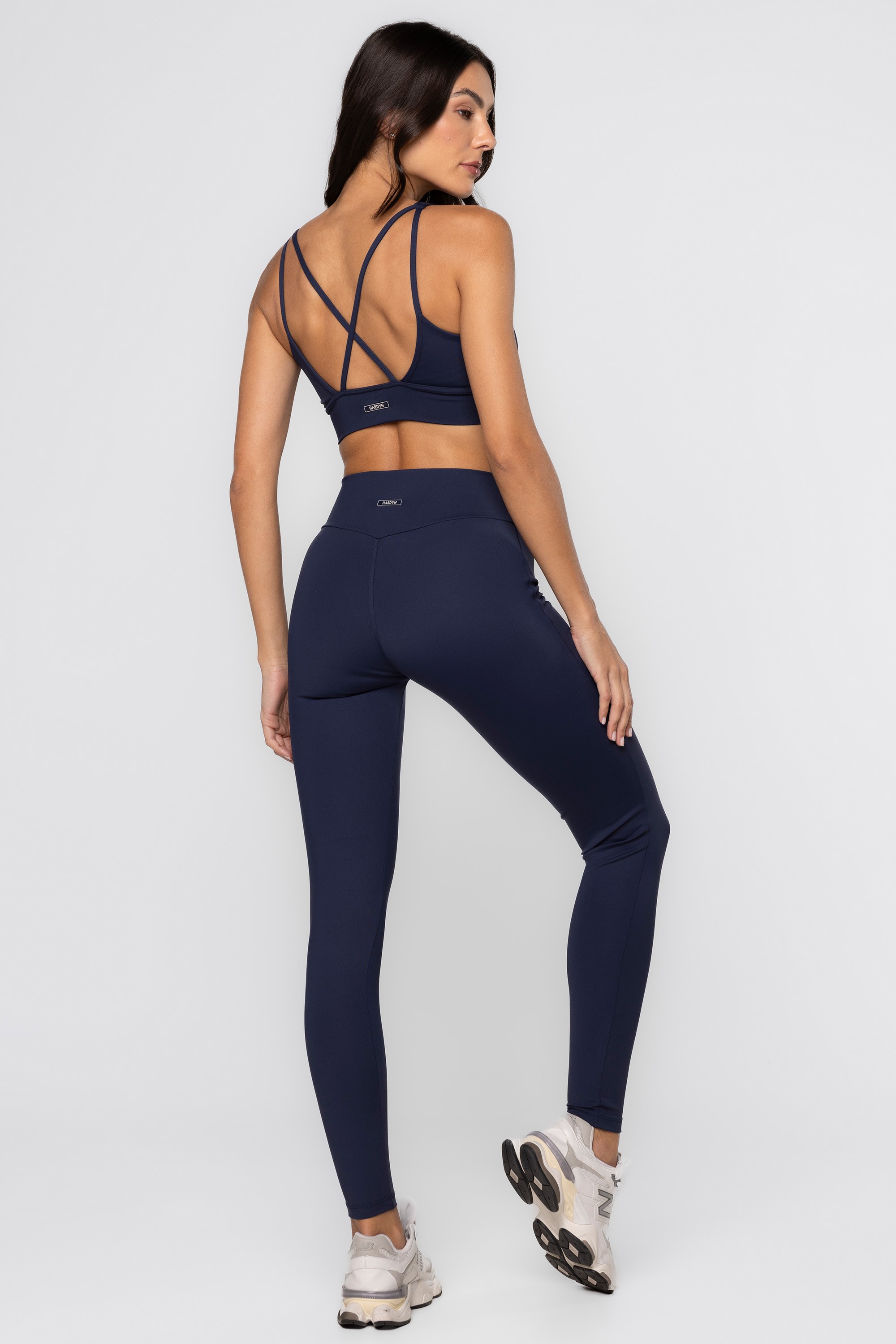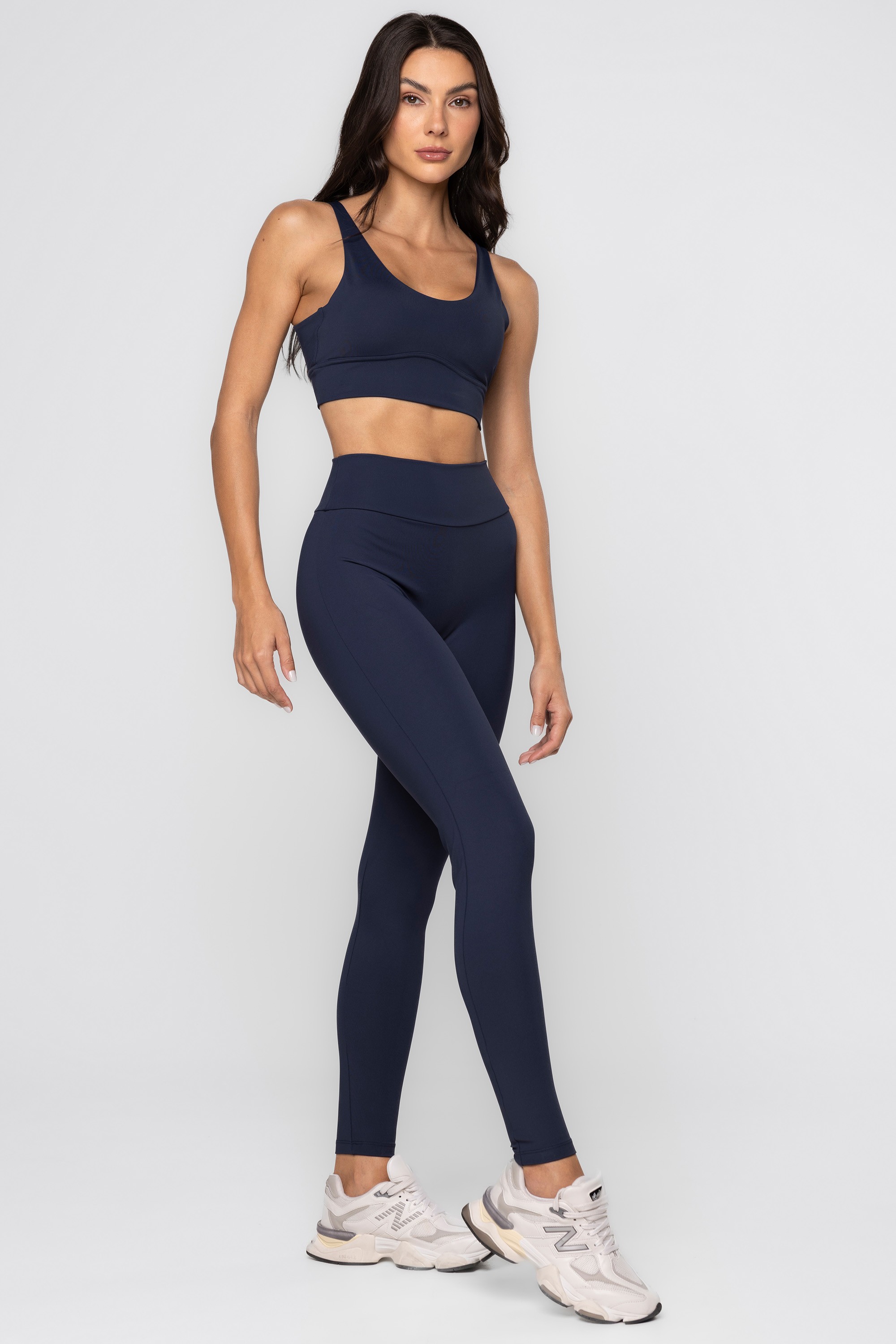 LEGGING AZUL MARINHO EM POLIAMIDA COM CÓS ALTO E SEM COSTURA FRONTAL