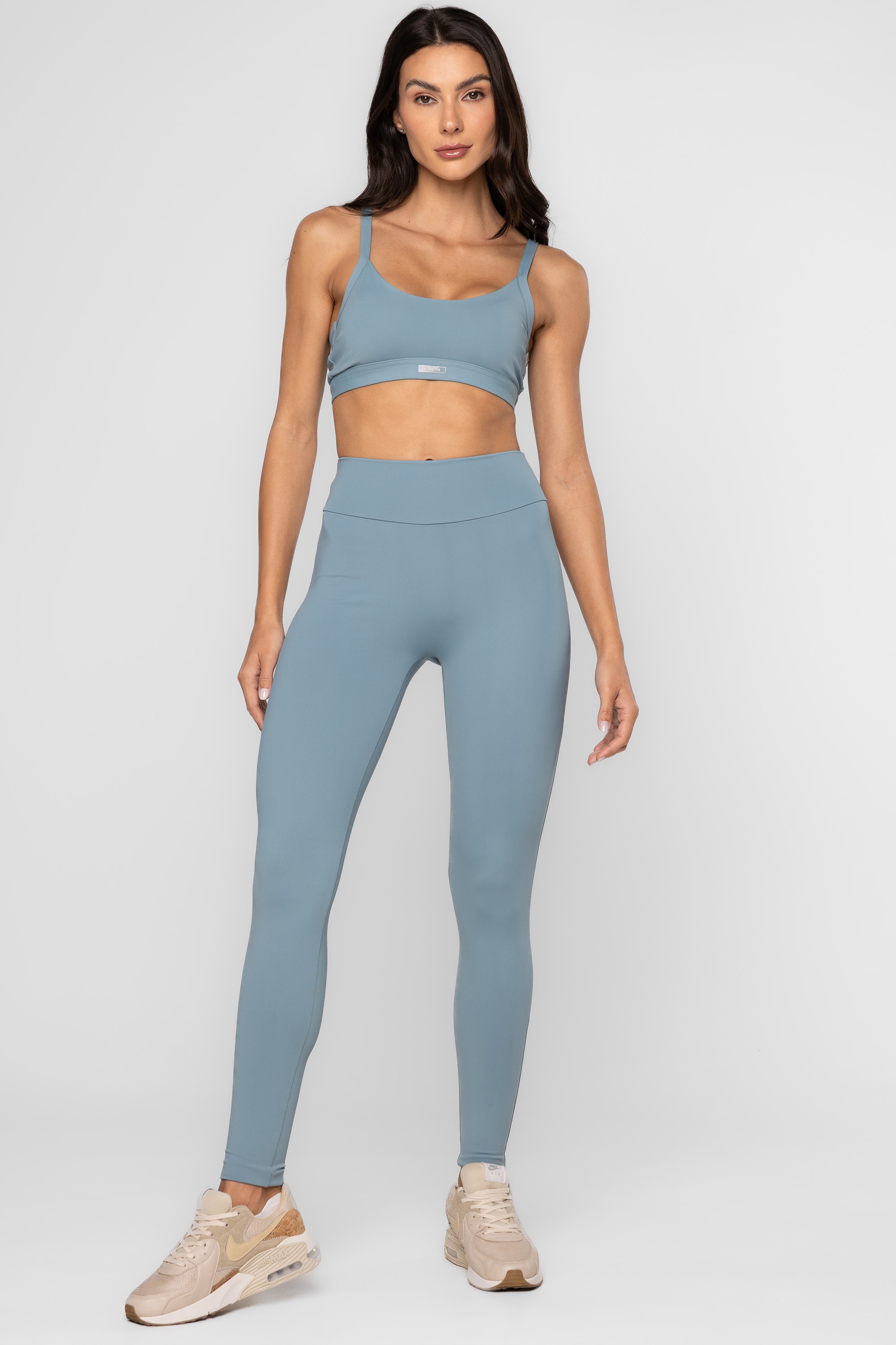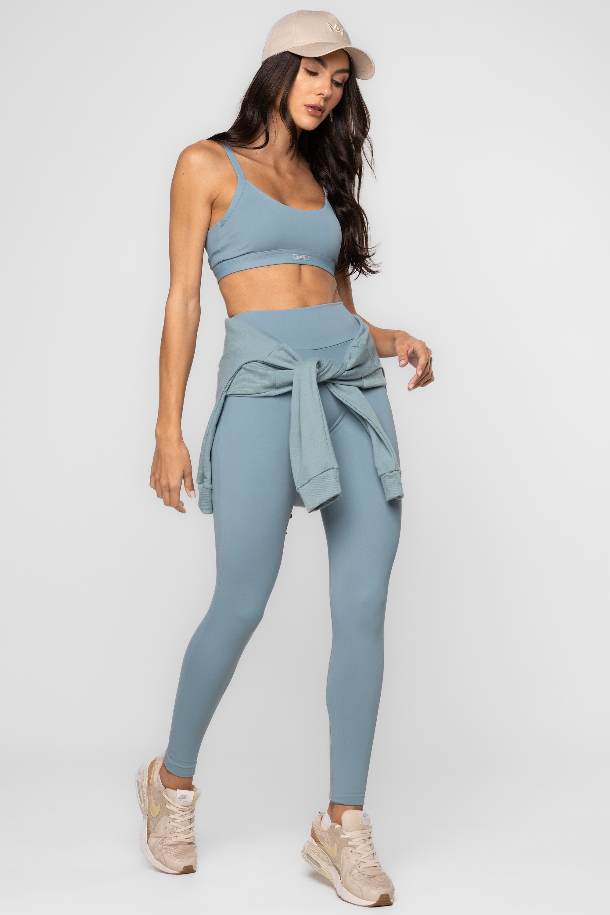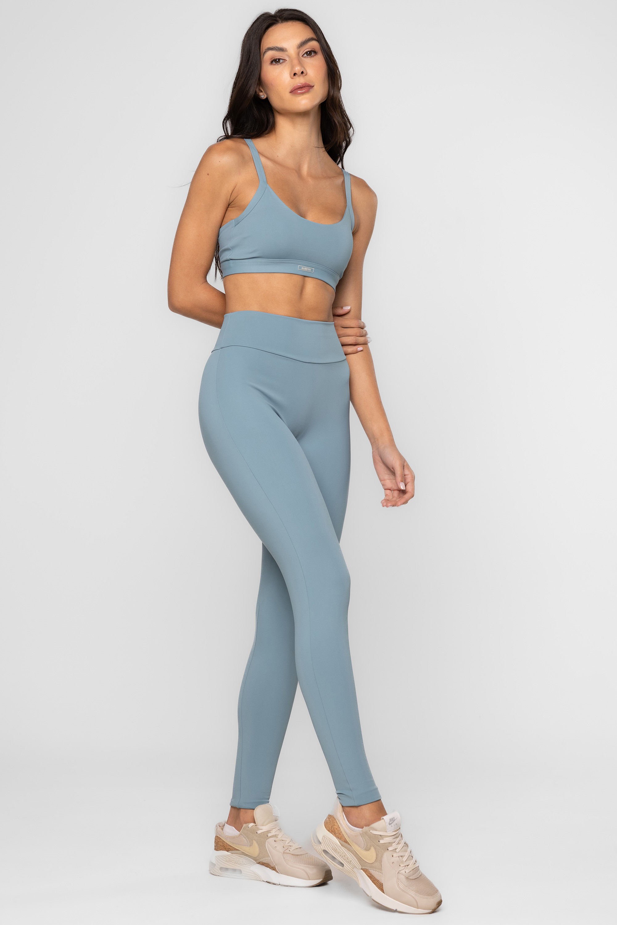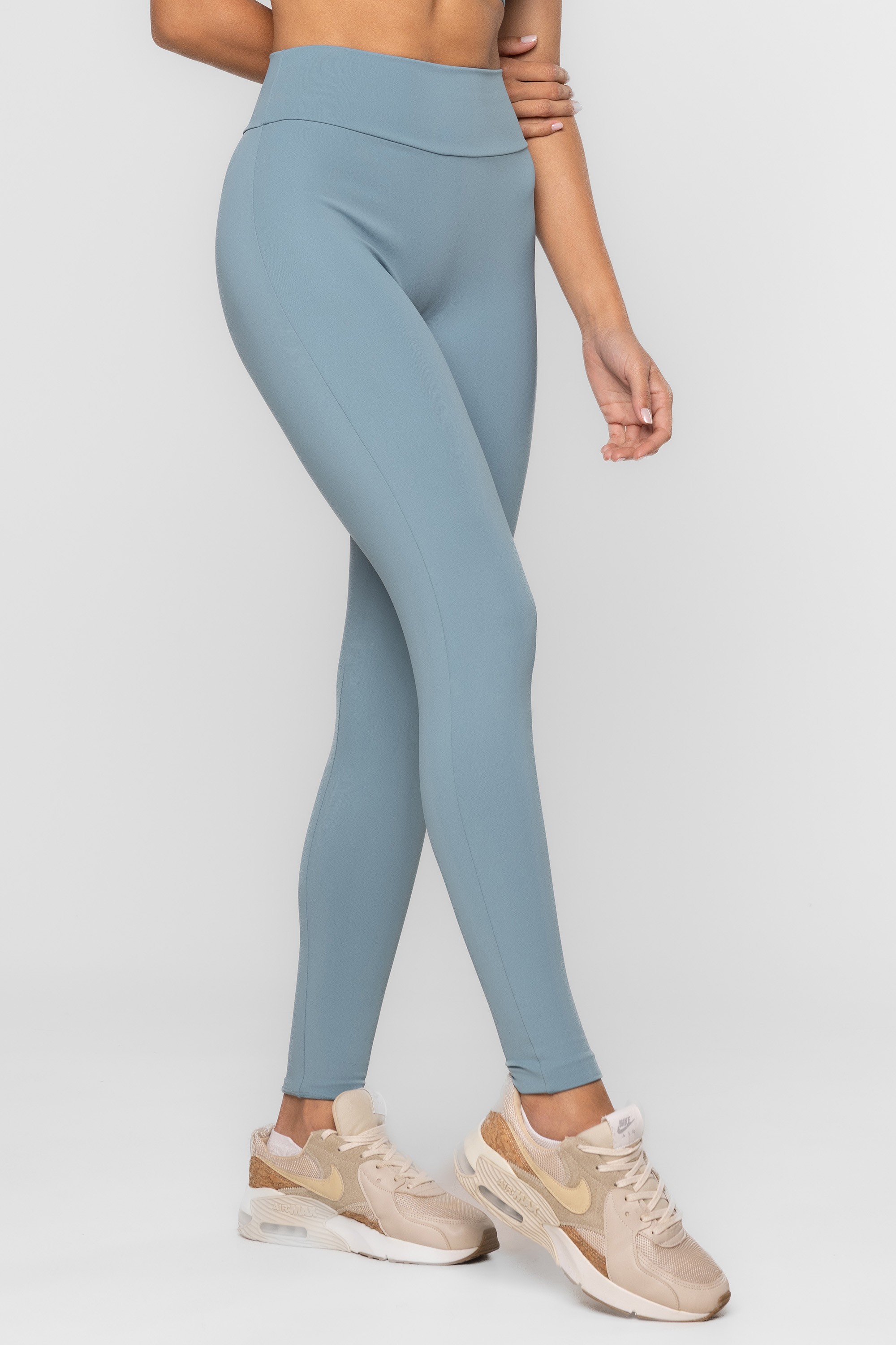 LEGGING AZUL CLARO EM POLIAMIDA COM CÓS ALTO E SEM COSTURA FRONTAL