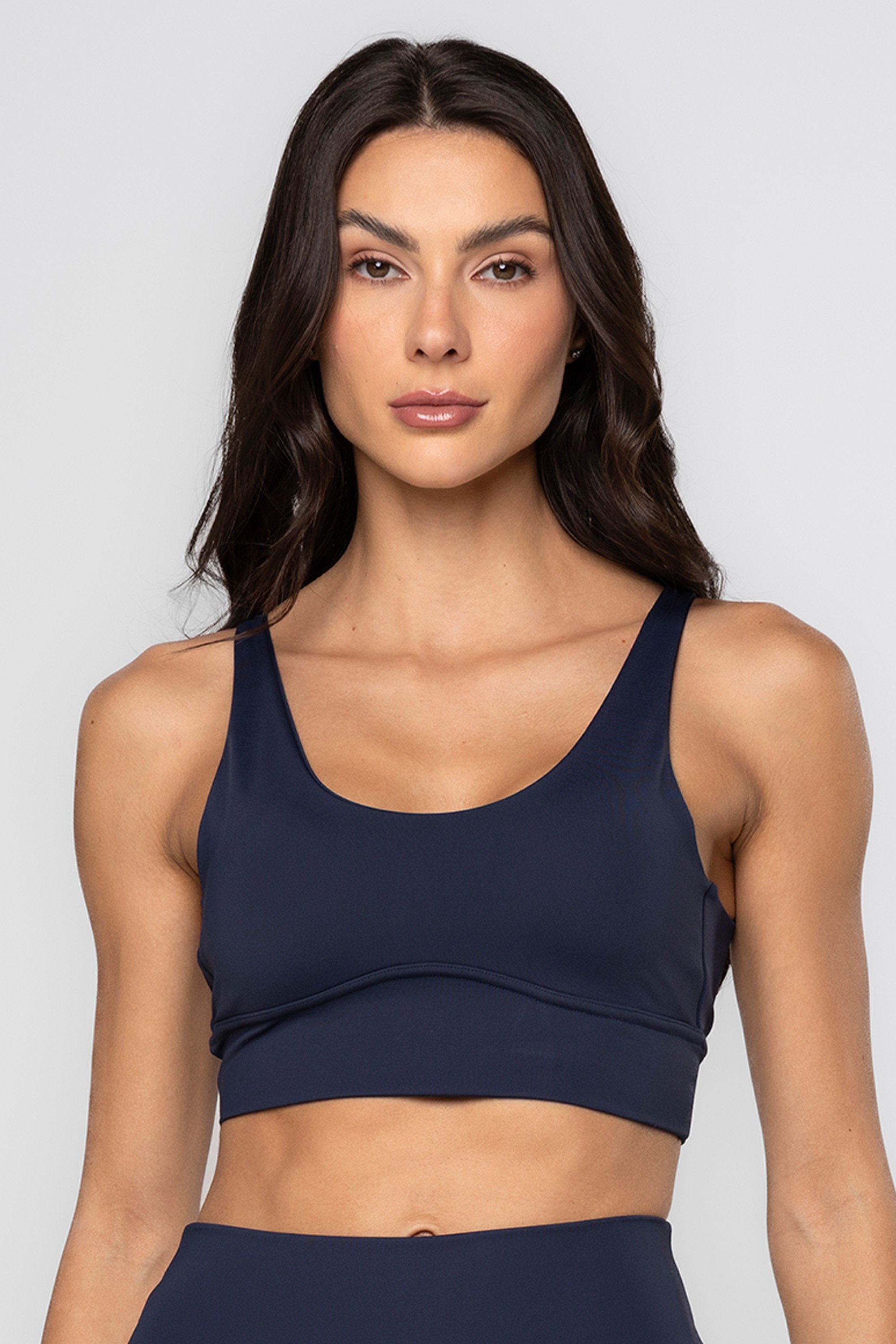 TOP AZUL MARINHO COM ALÇAS FINAS E CÓS LARGO