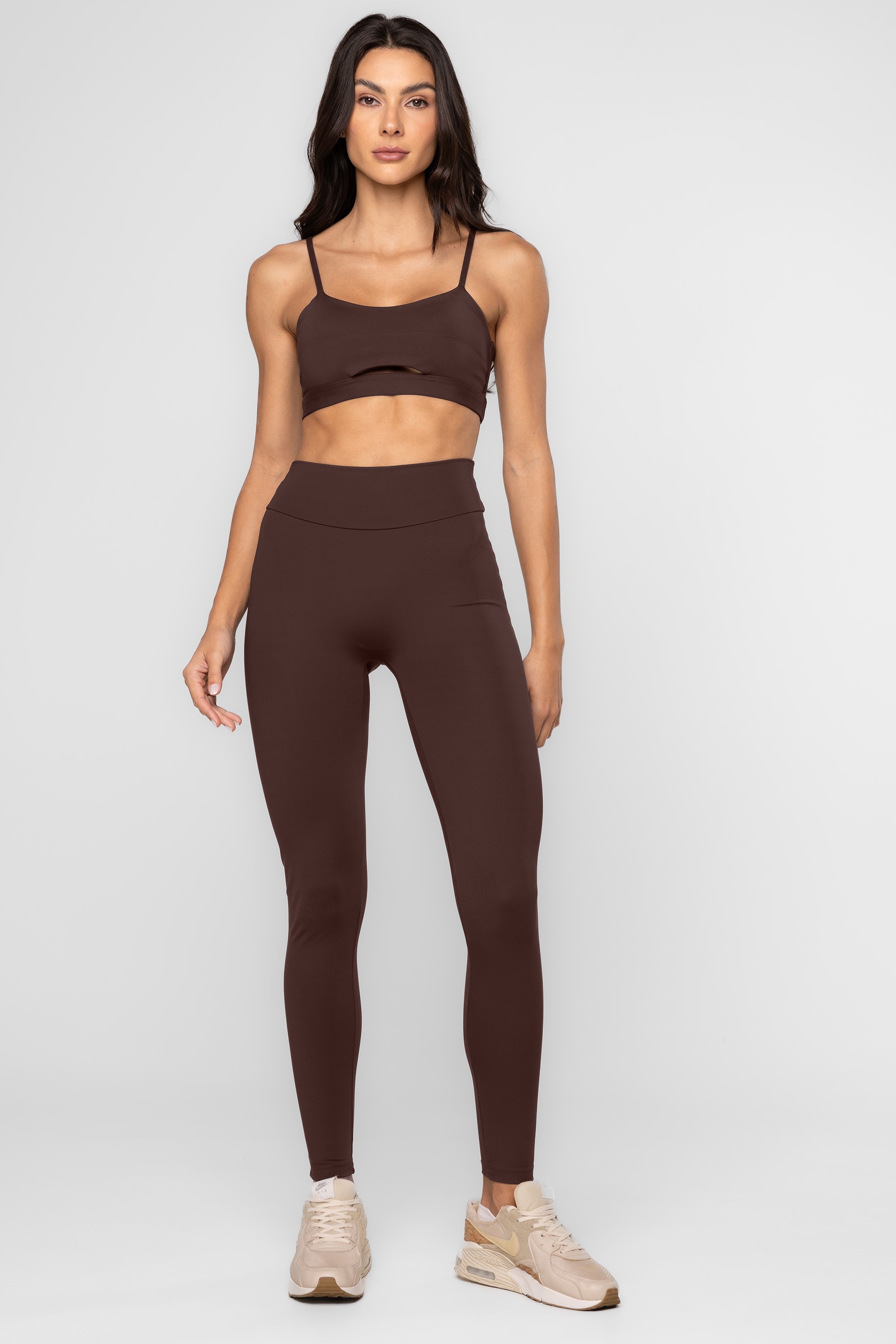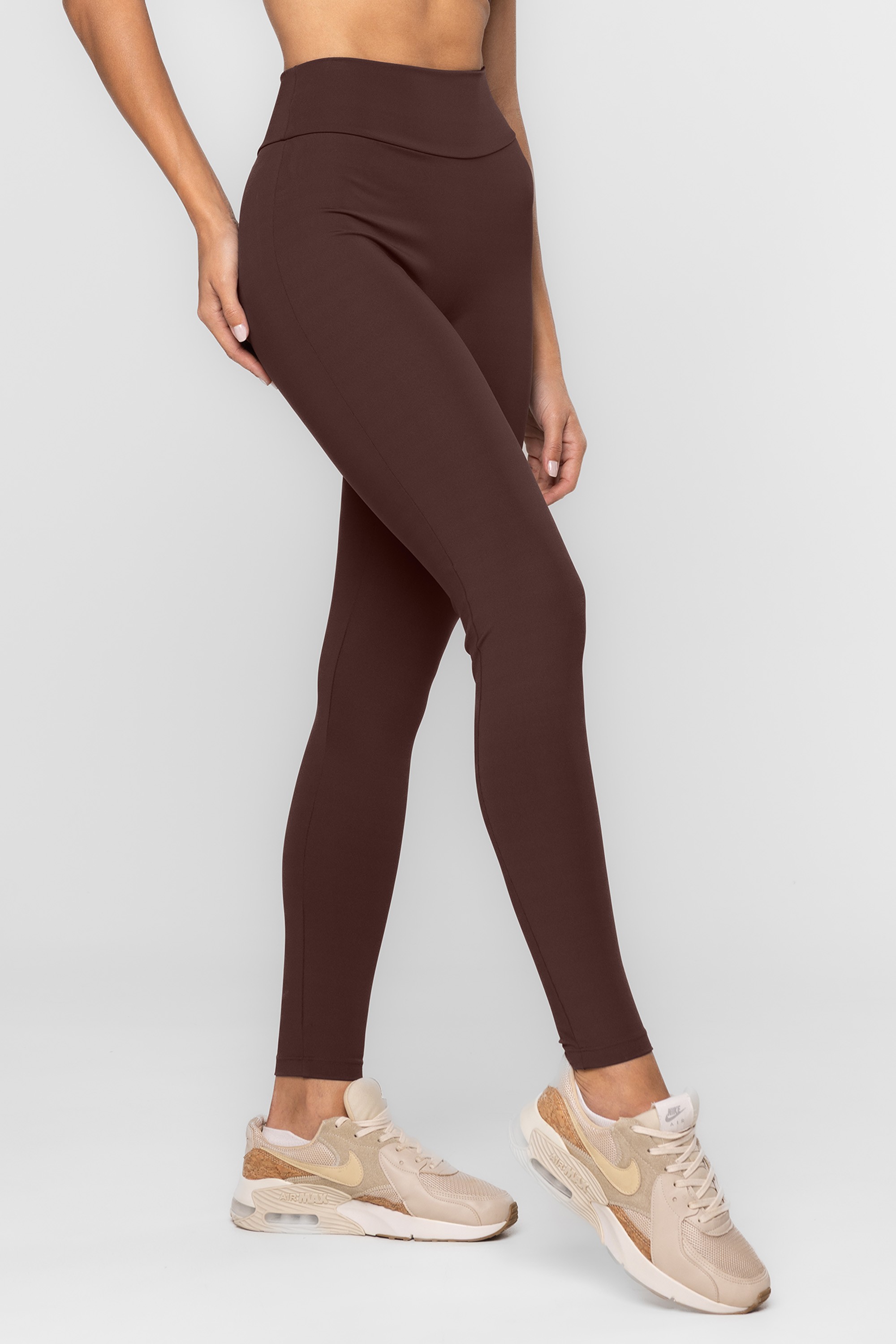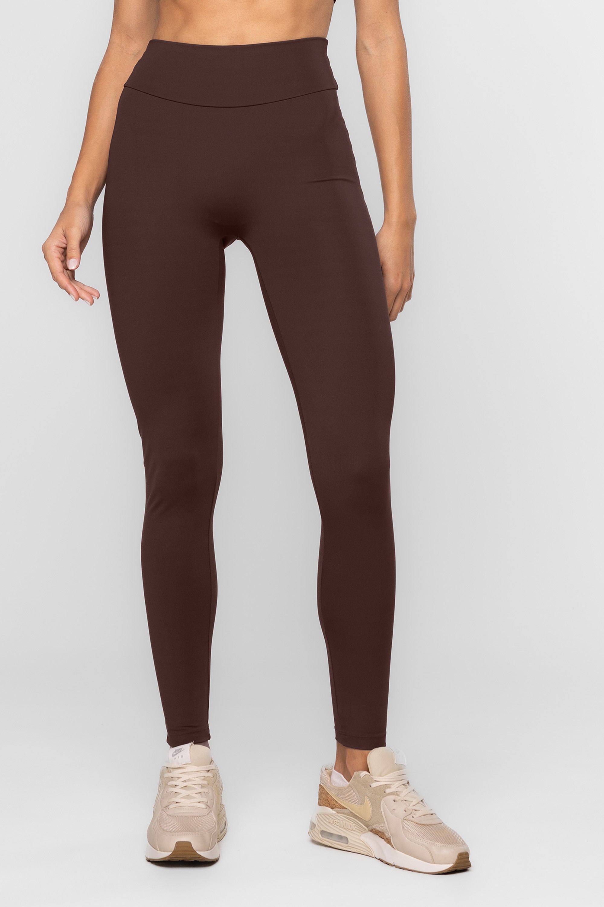 LEGGING MARROM EM POLIAMIDA COM CÓS ALTO E SEM COSTURA FRONTAL