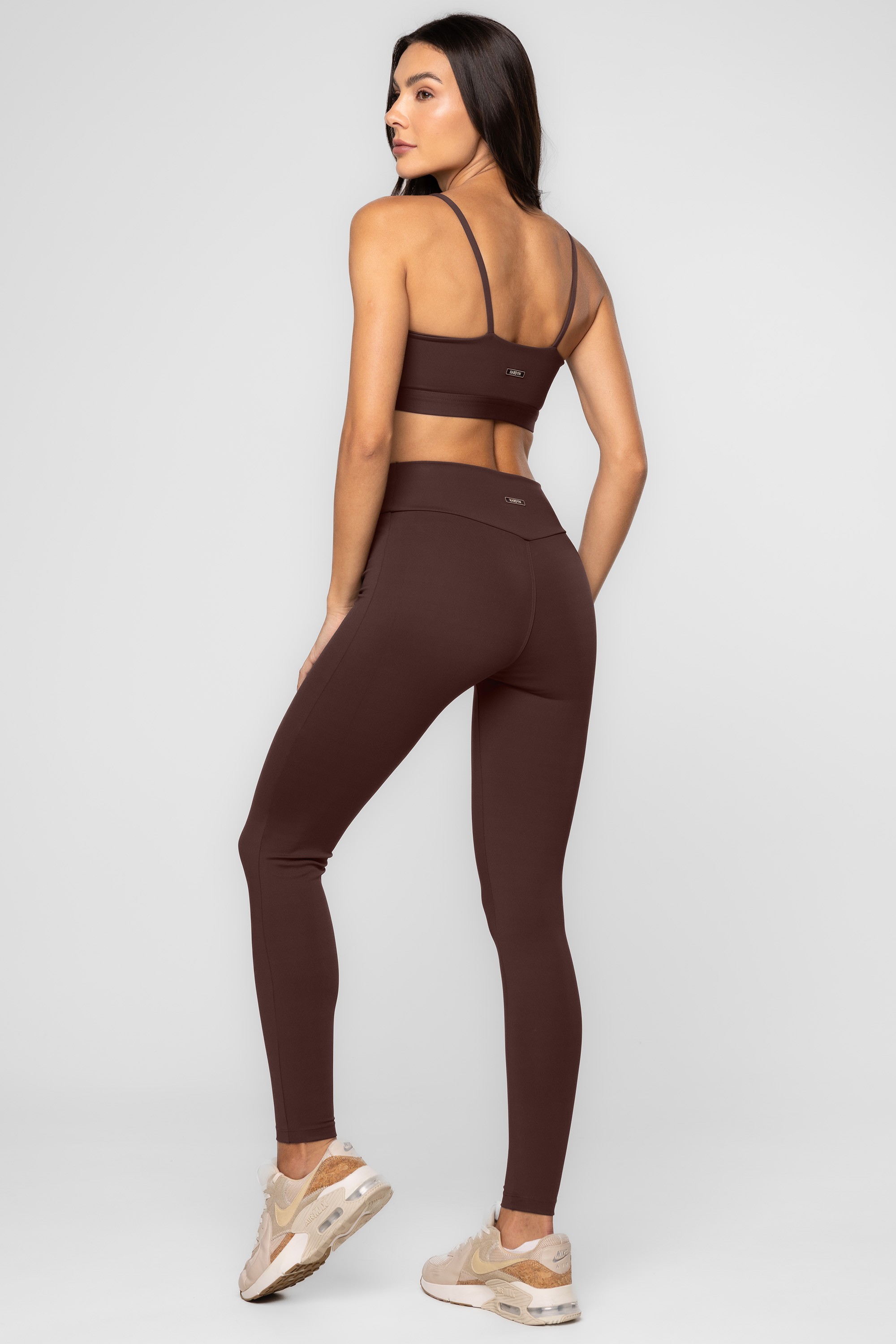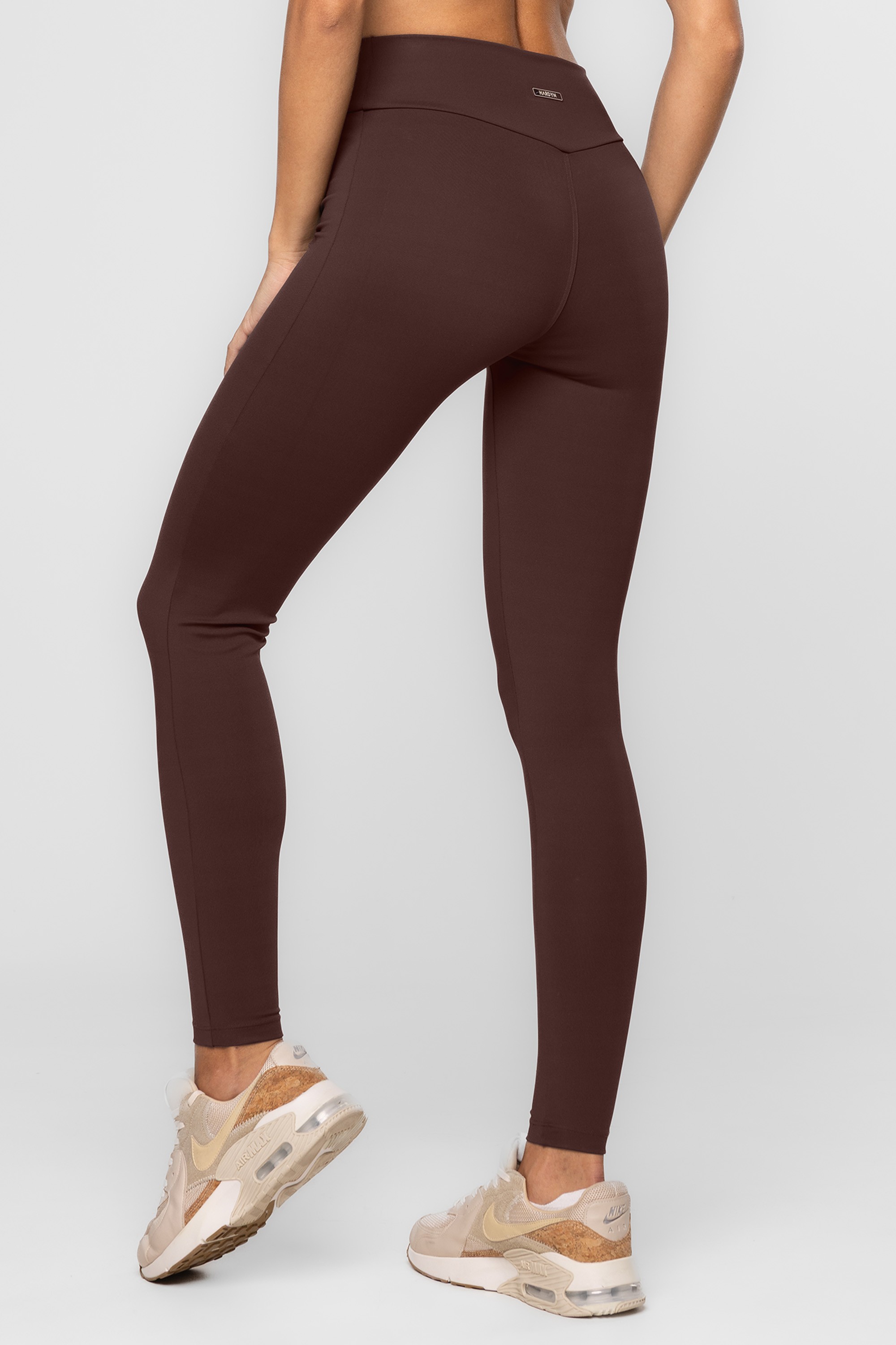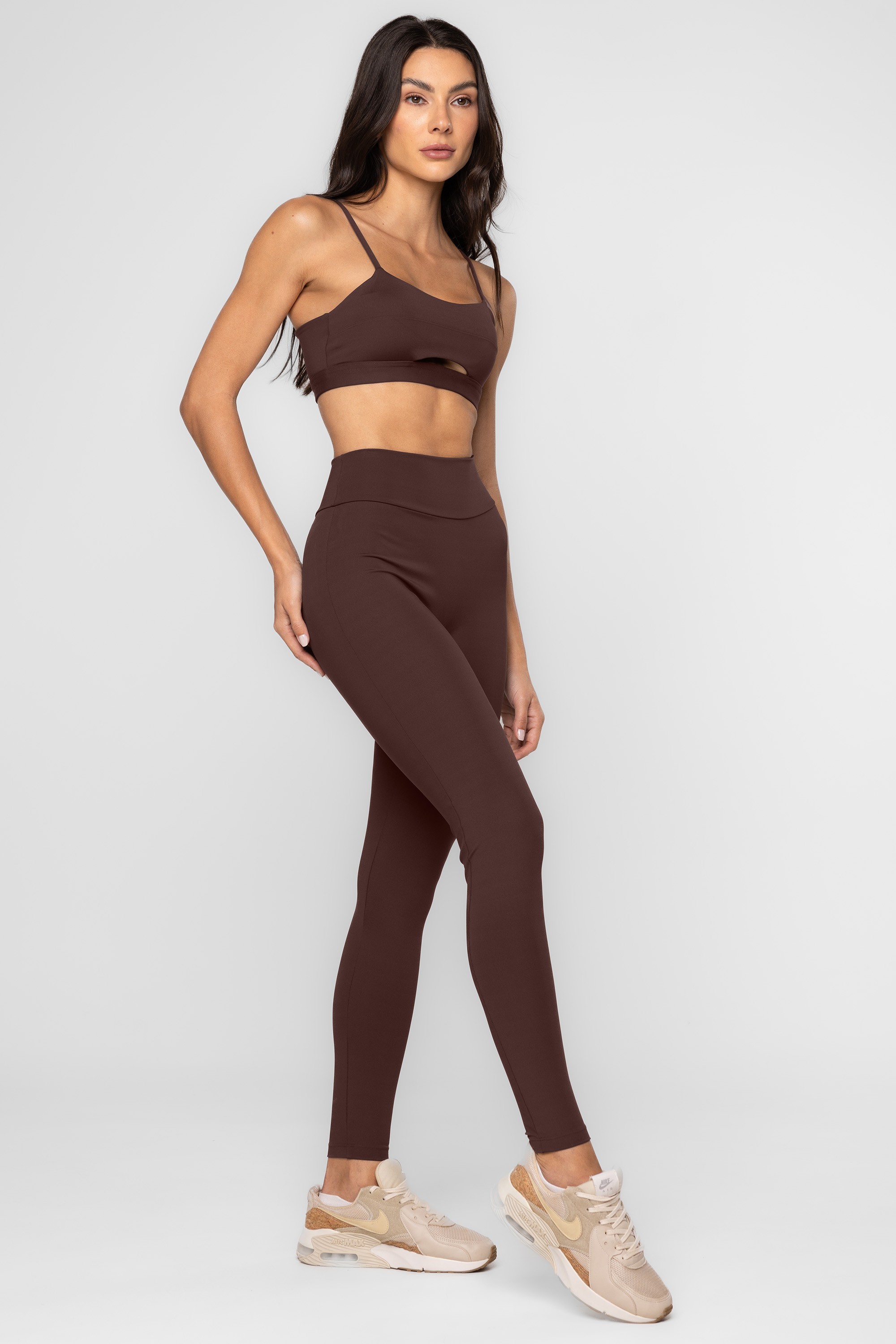 LEGGING MARROM EM POLIAMIDA COM CÓS ALTO E SEM COSTURA FRONTAL