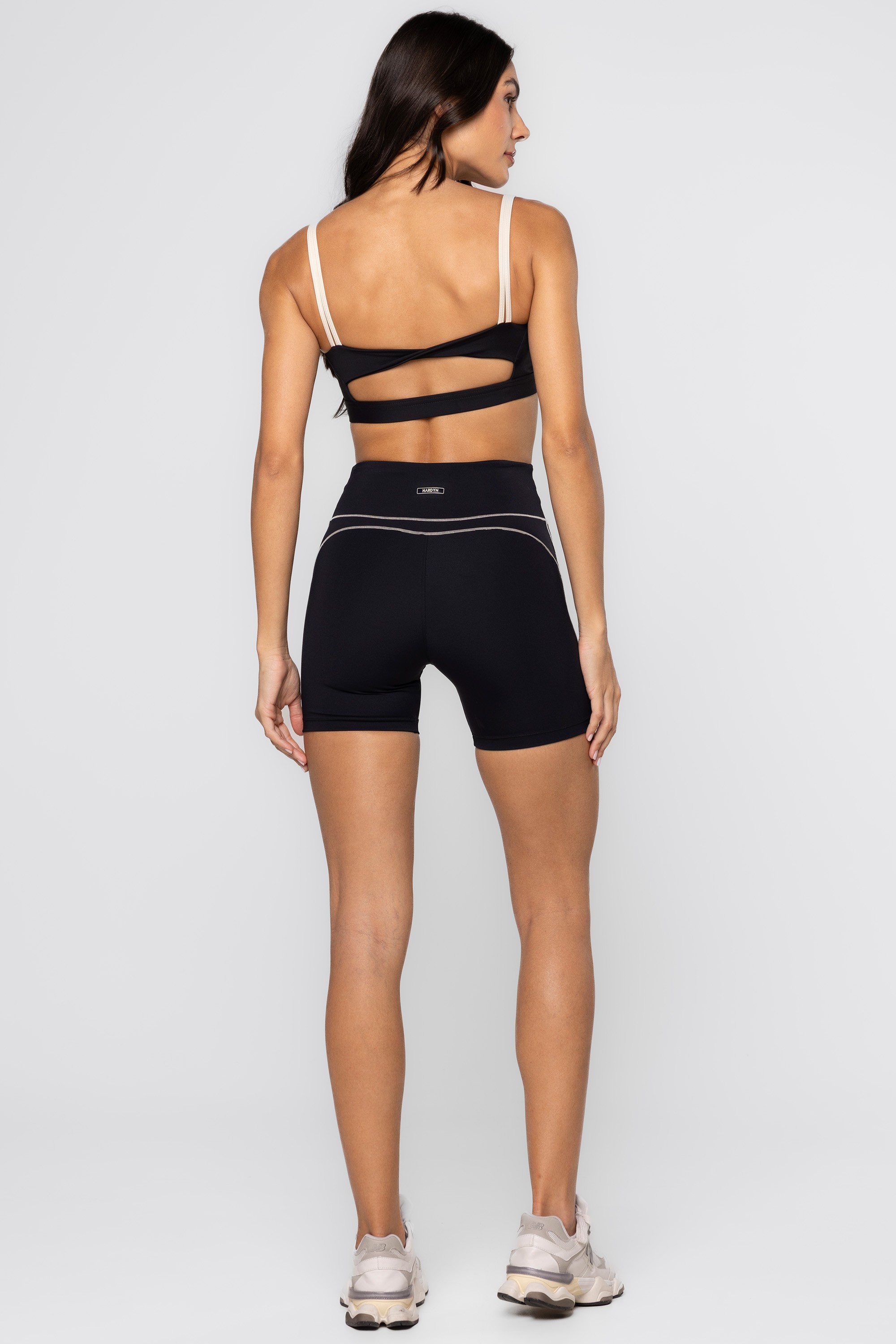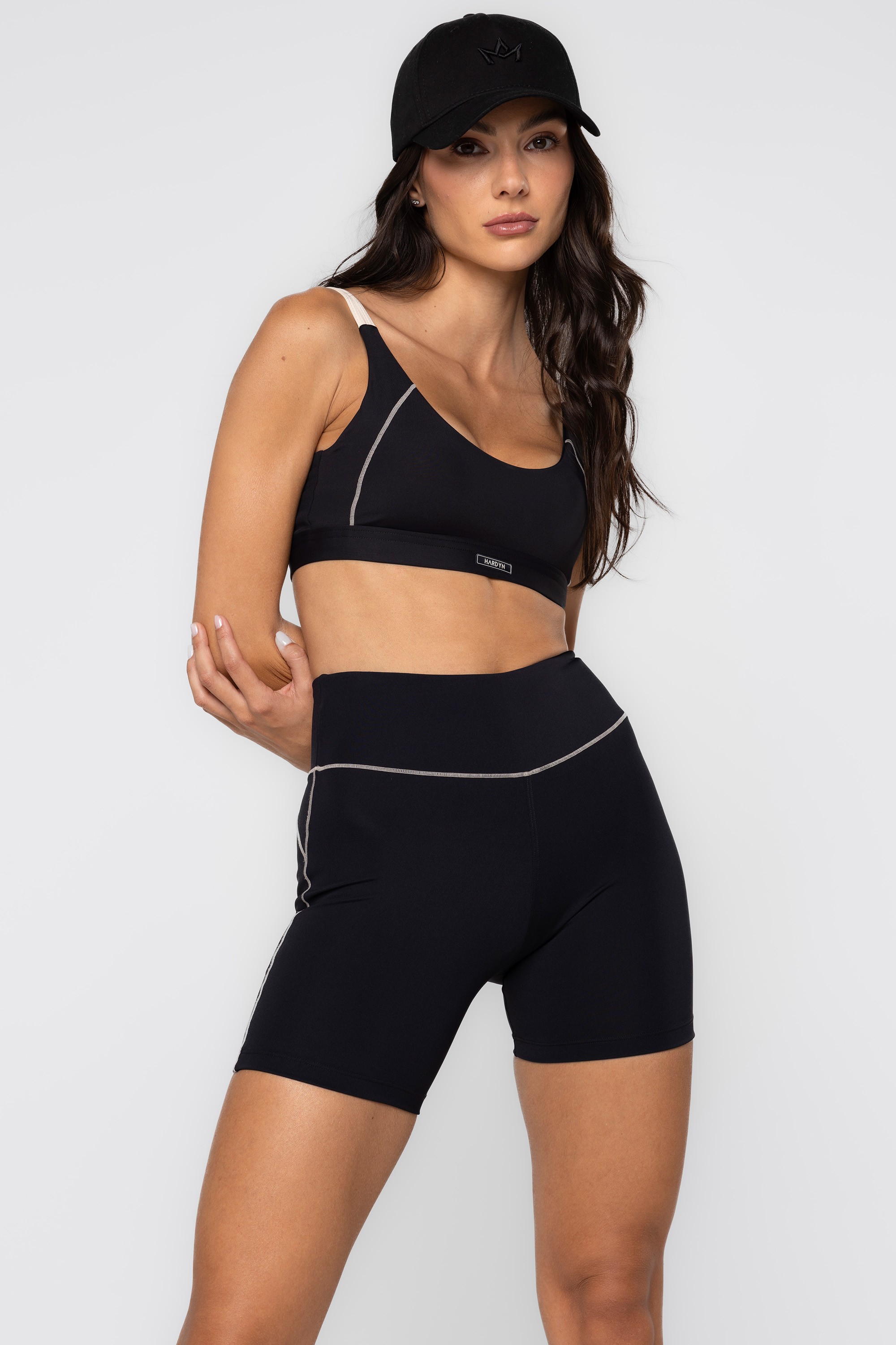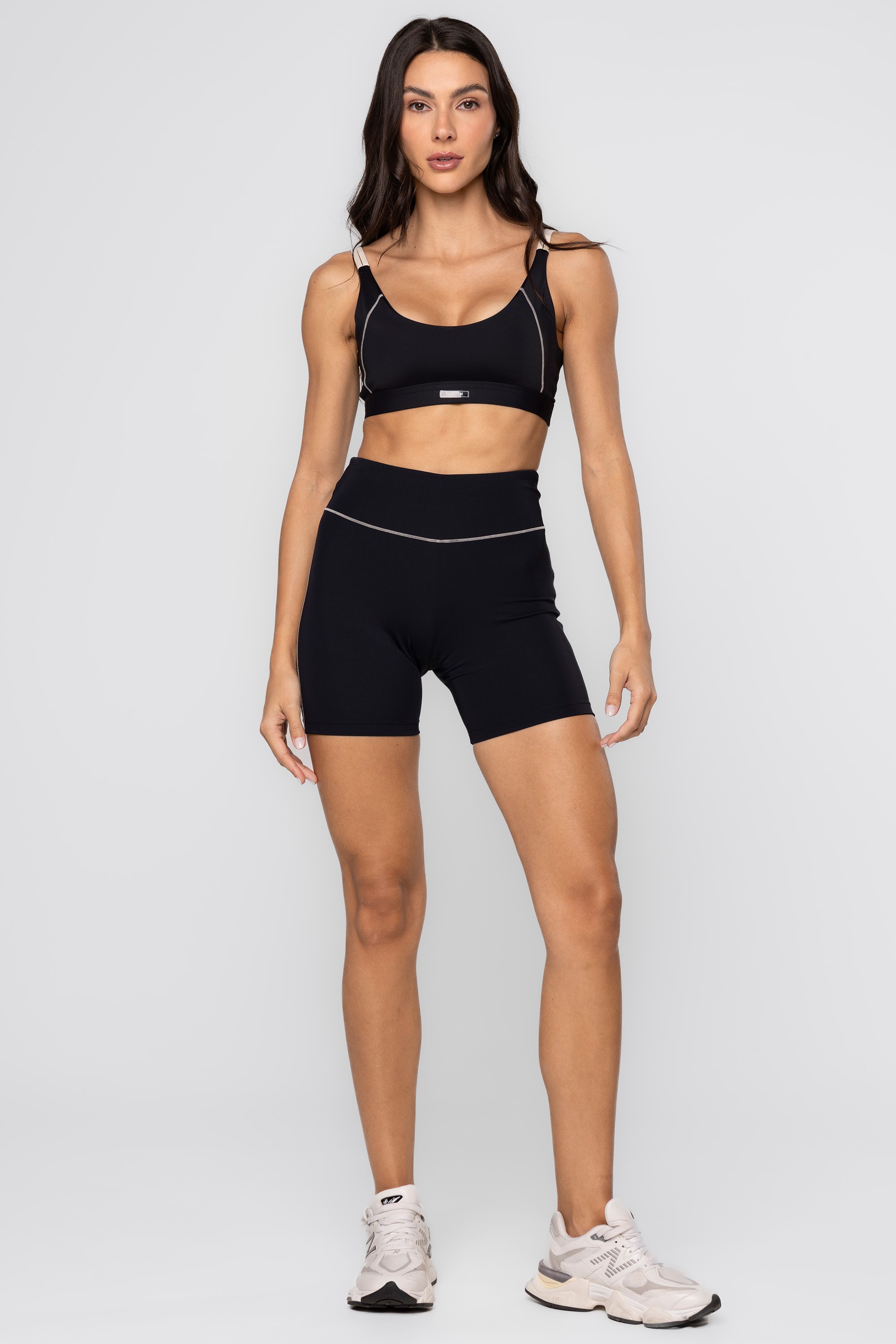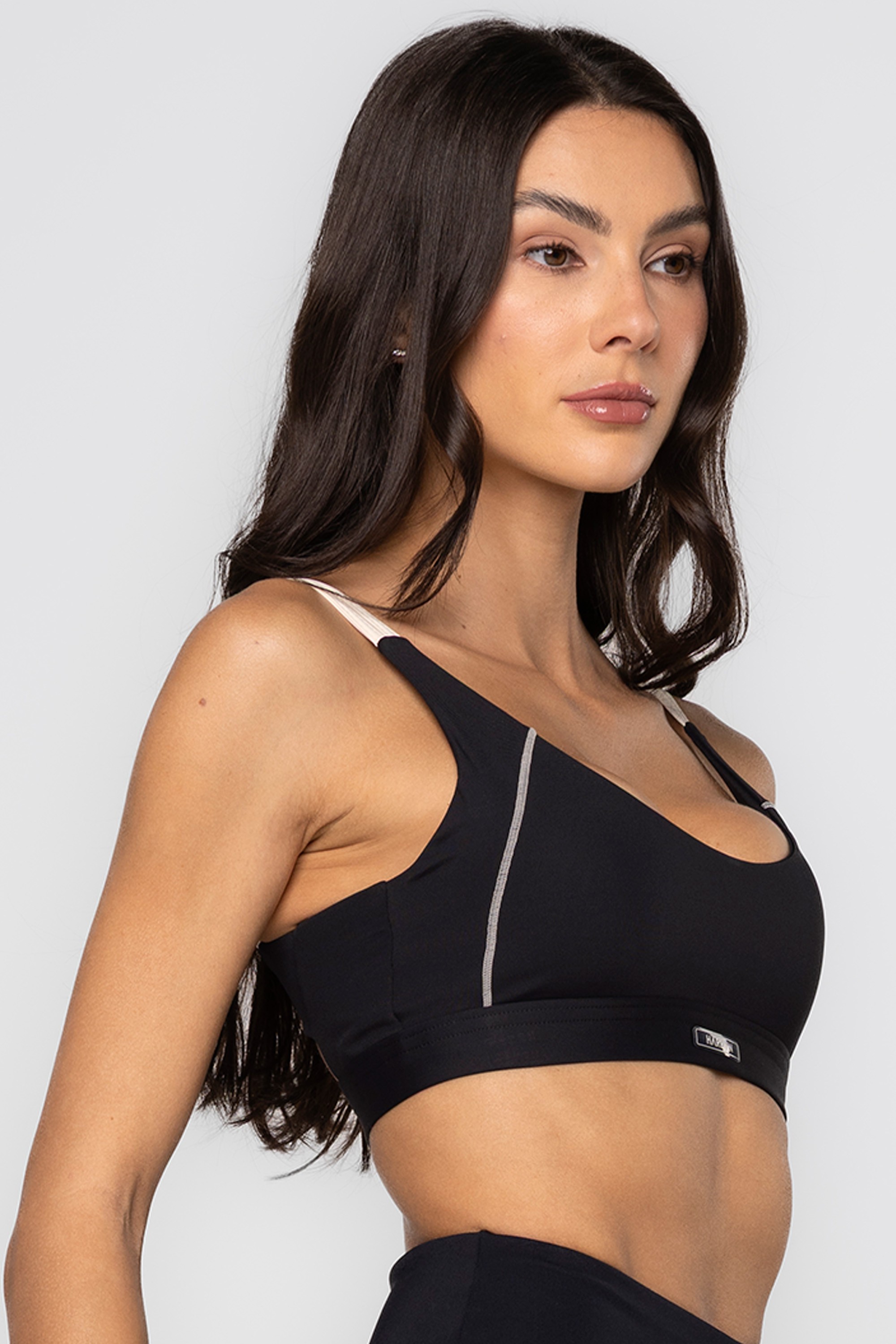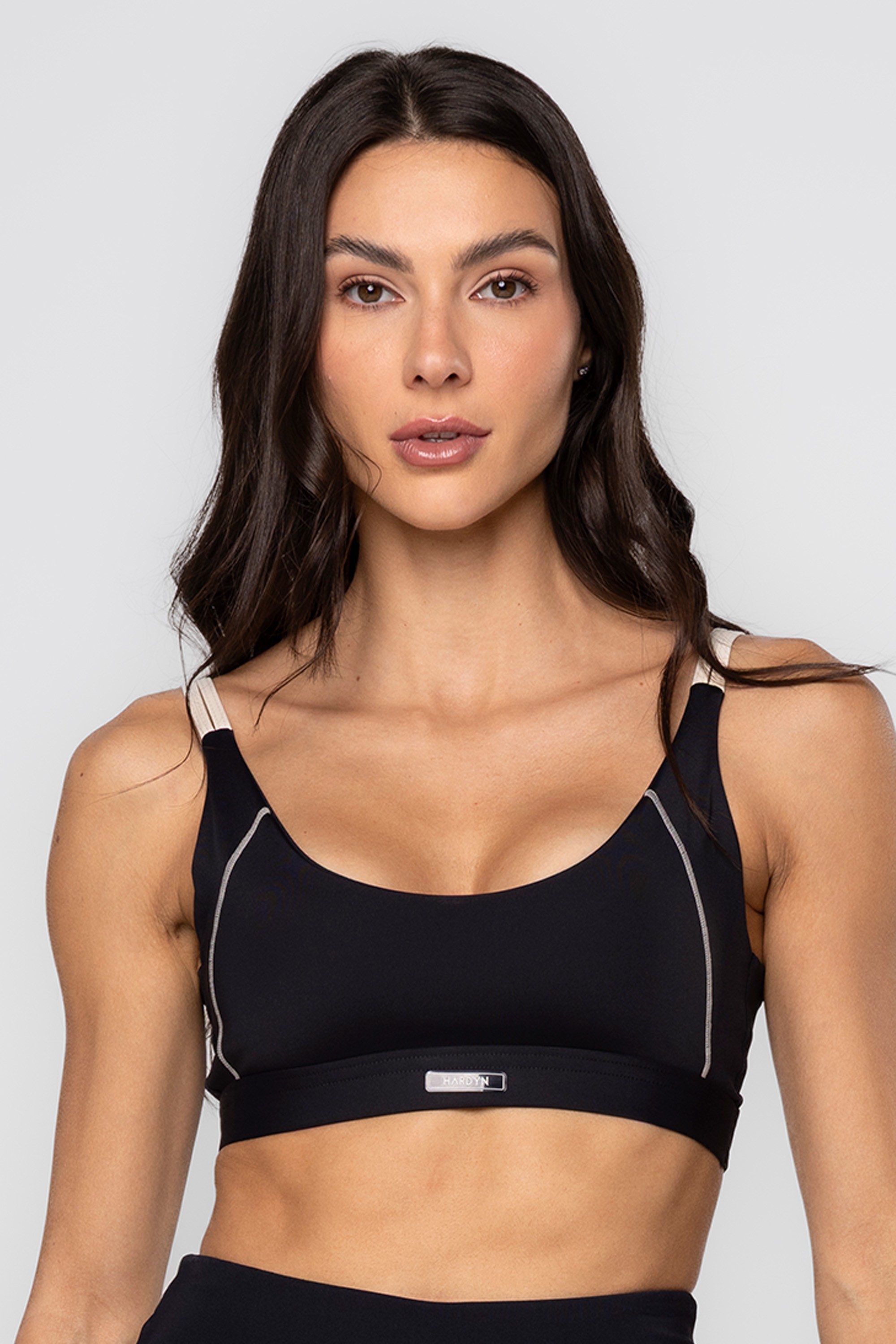TOP LEGACY EM POLIAMIDA PRETA COM DETALHES OFF WHITE