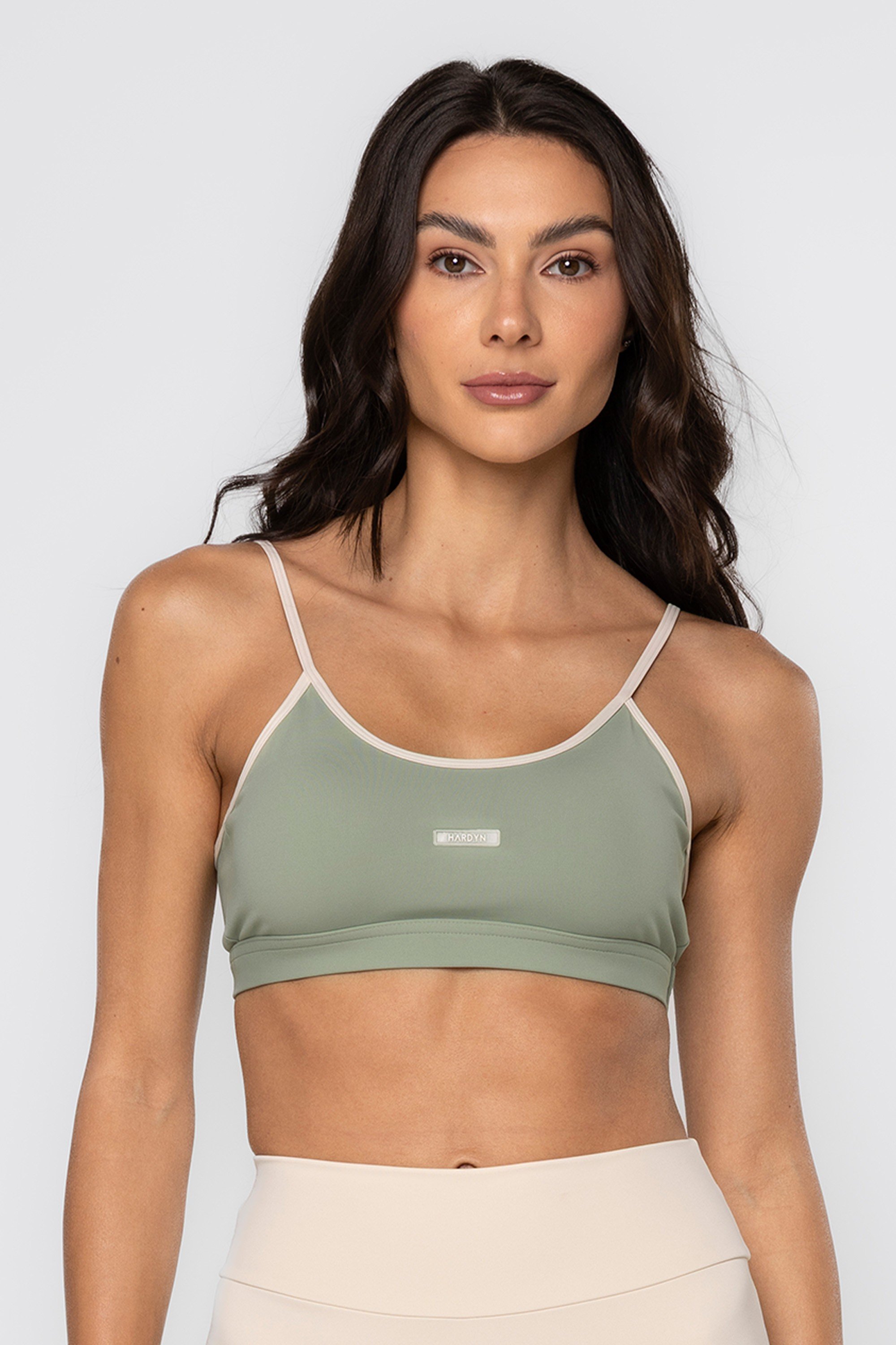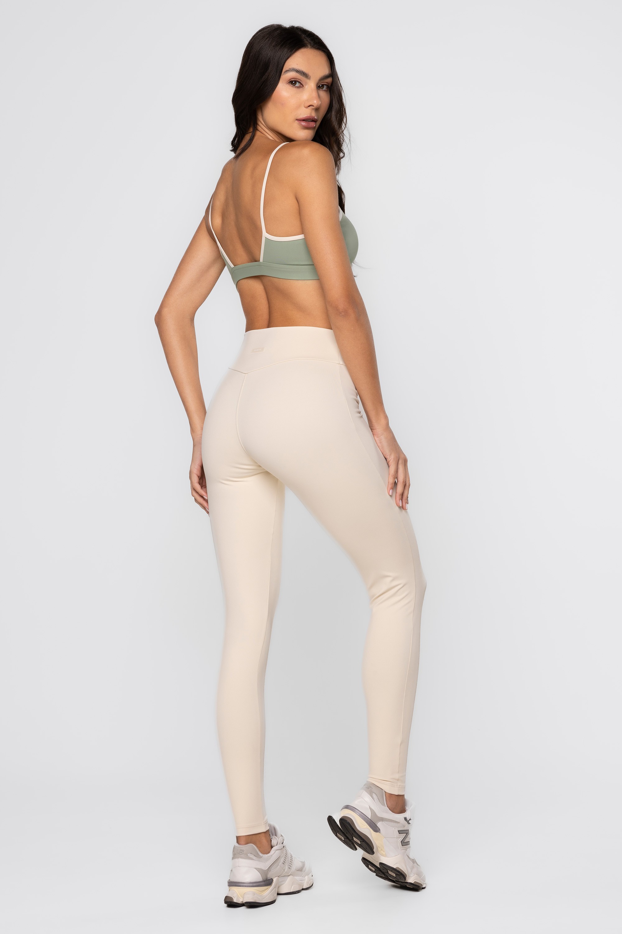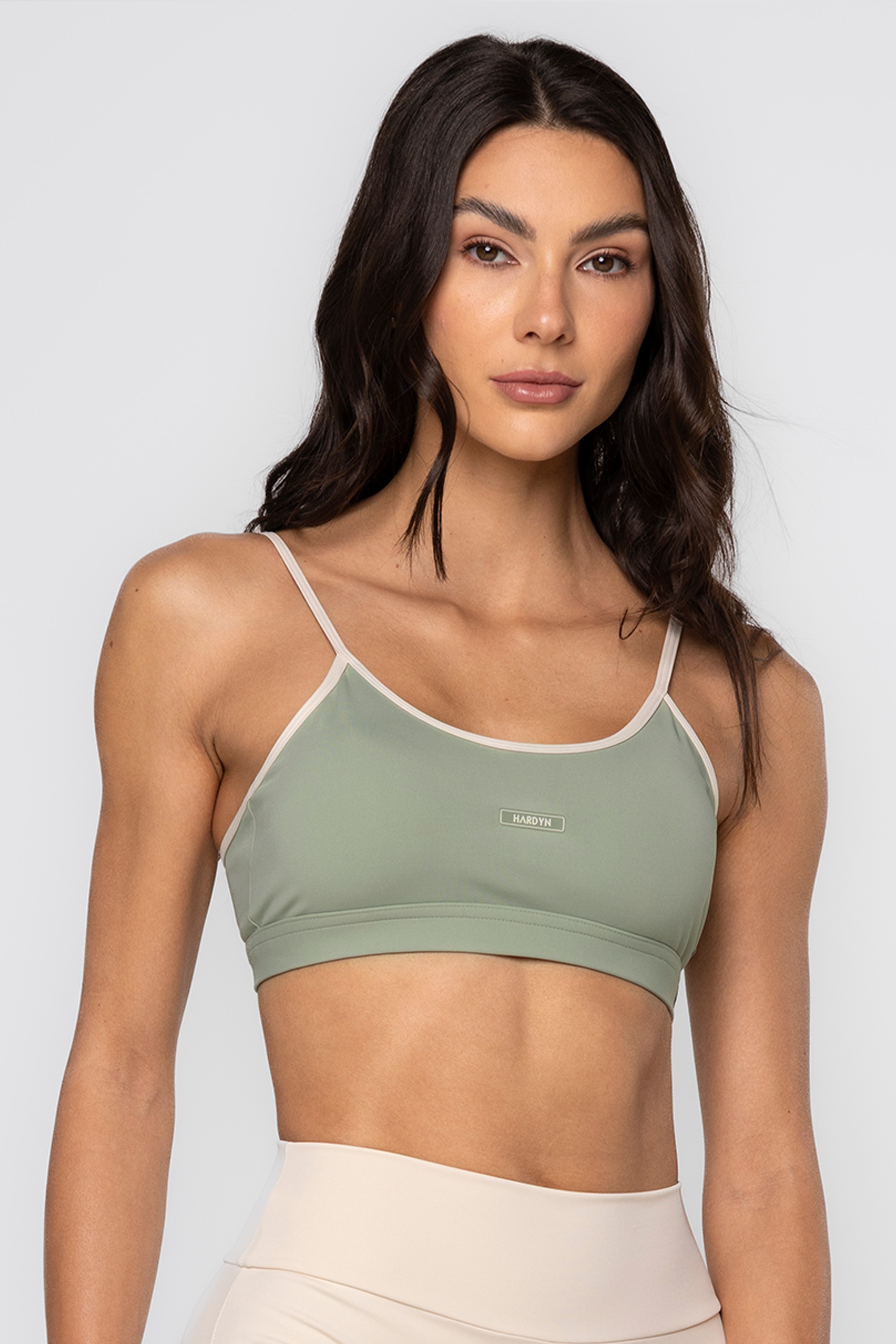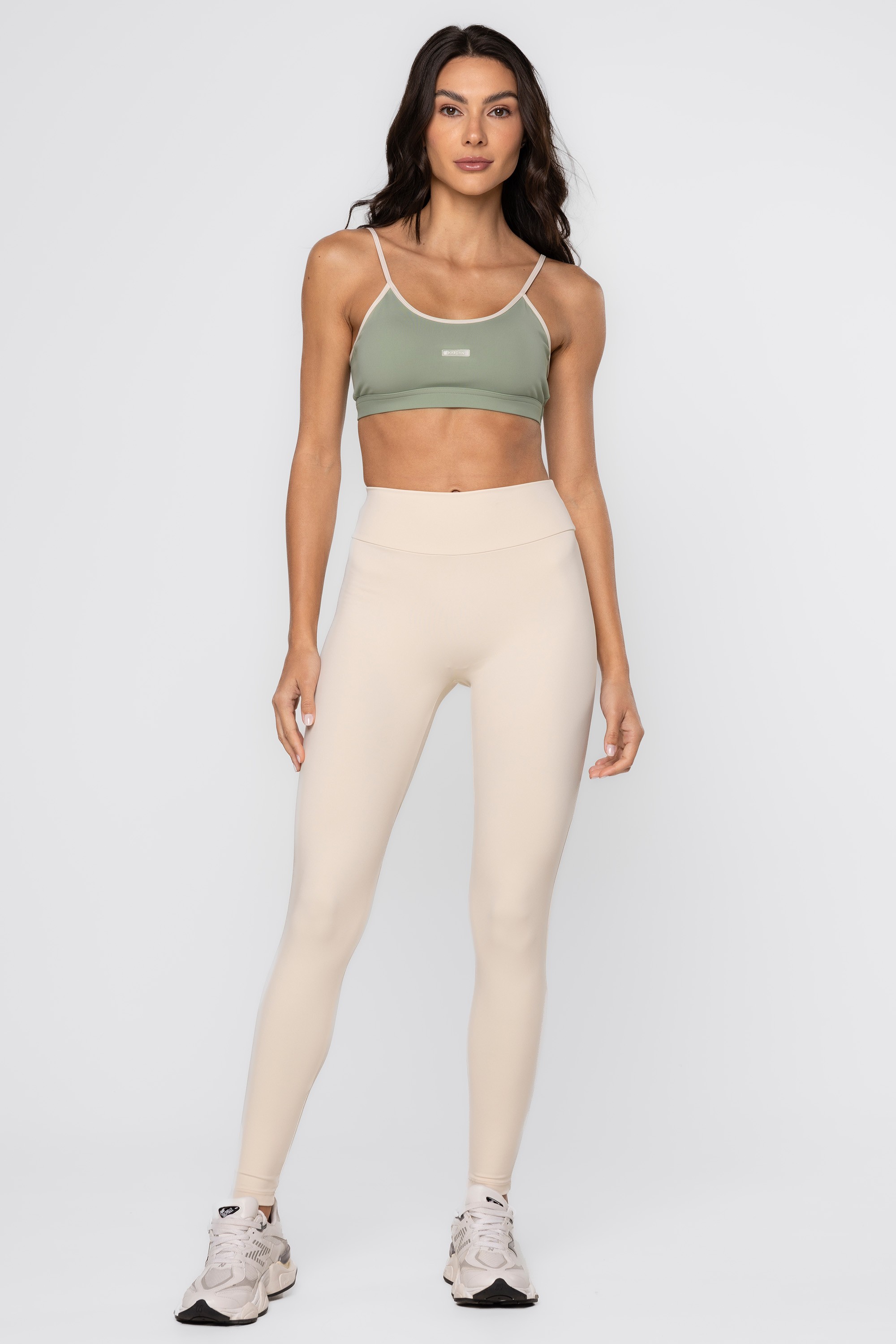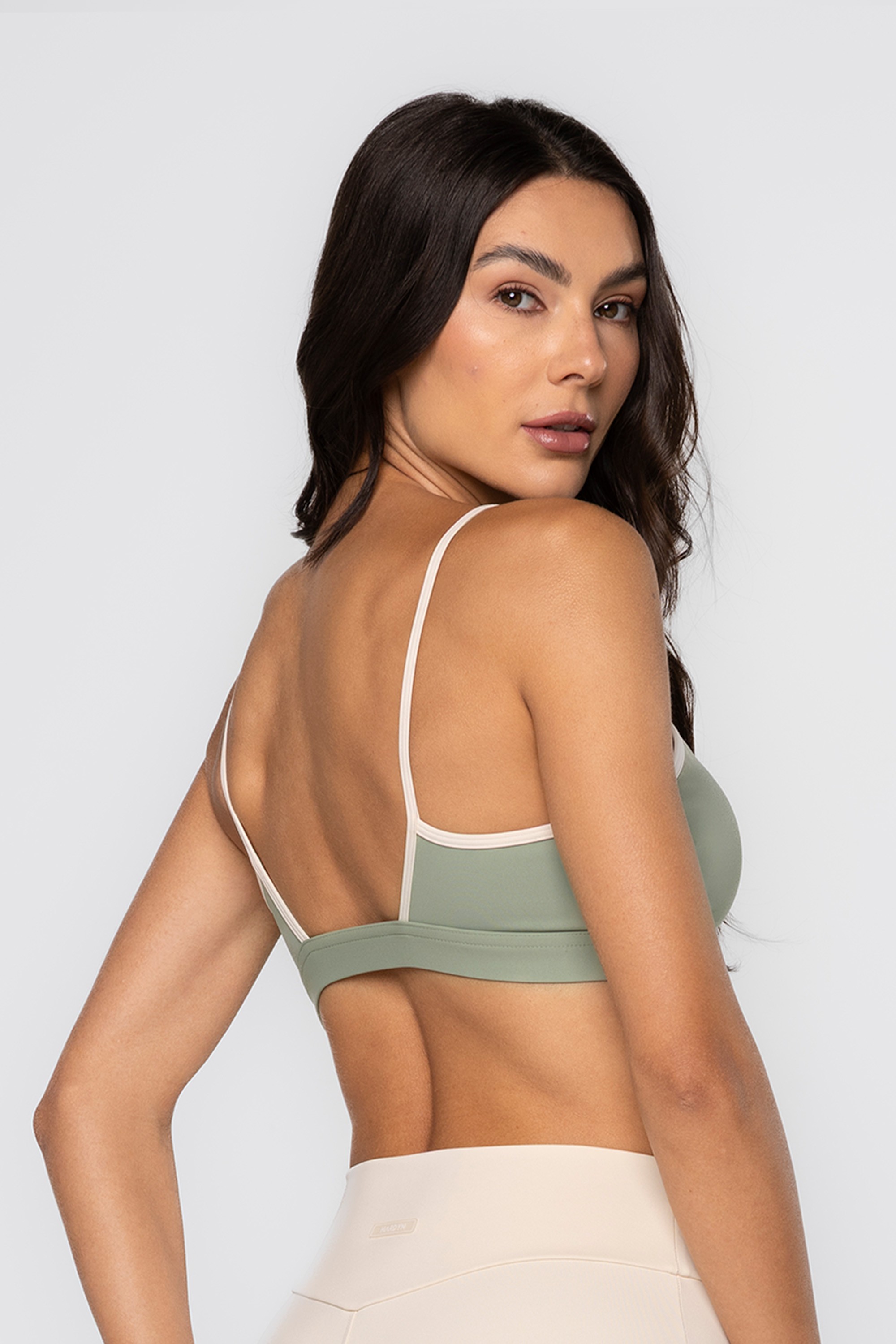 TOP LEGACY EM POLIAMIDA VERDE COM DETALHES EM OFF WHITE
