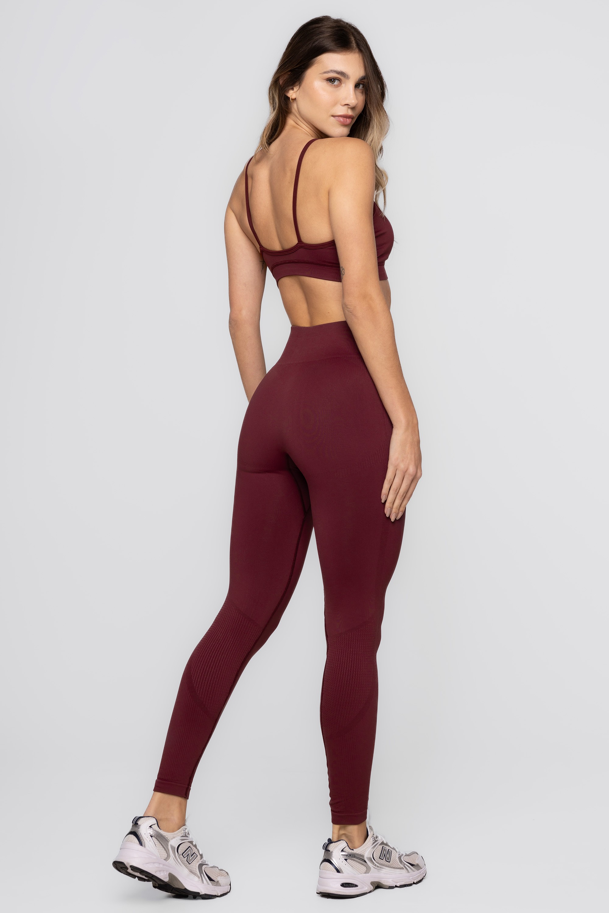 Protege a pele dos raios solares (UVA e UVB). Obs.: lembre-se: de usar protetor solar, a tecnologia não substitui o seu uso.LEGGING SEAMLESS POLIAMIDA VINHO
