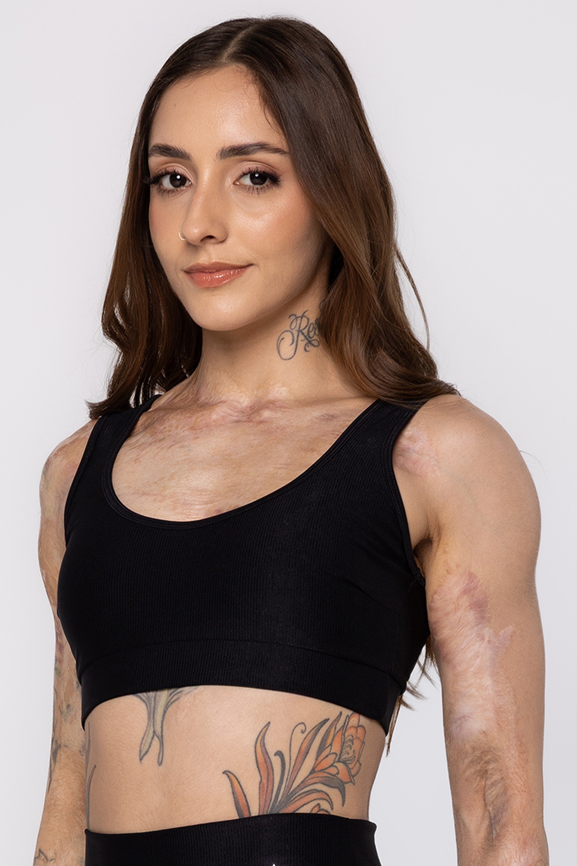 • Decote em “U” nas costas, que proporciona visual moderno que valoriza o corpo.