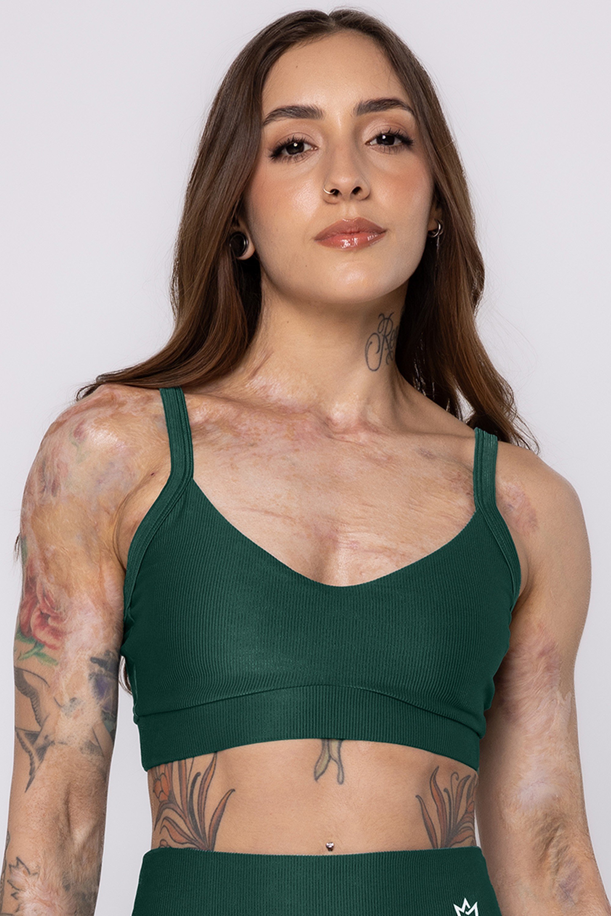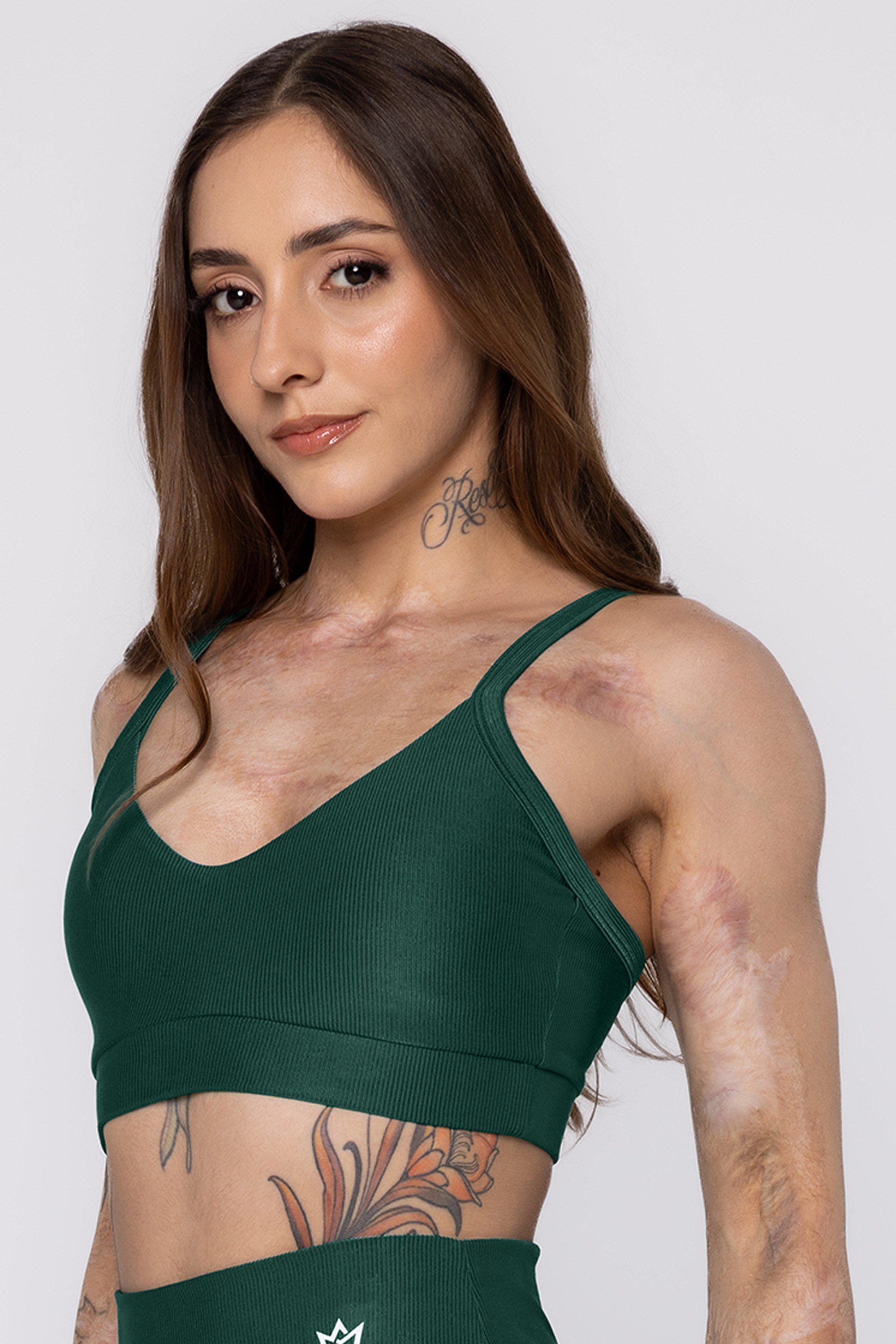 Transporta a umidade do suor pra parte externa do tecido para rápida evaporação, mantendo a leveza do tecido proporcionando mais conforto.TOP SAND DECOTE EMBUTIDO VERDE