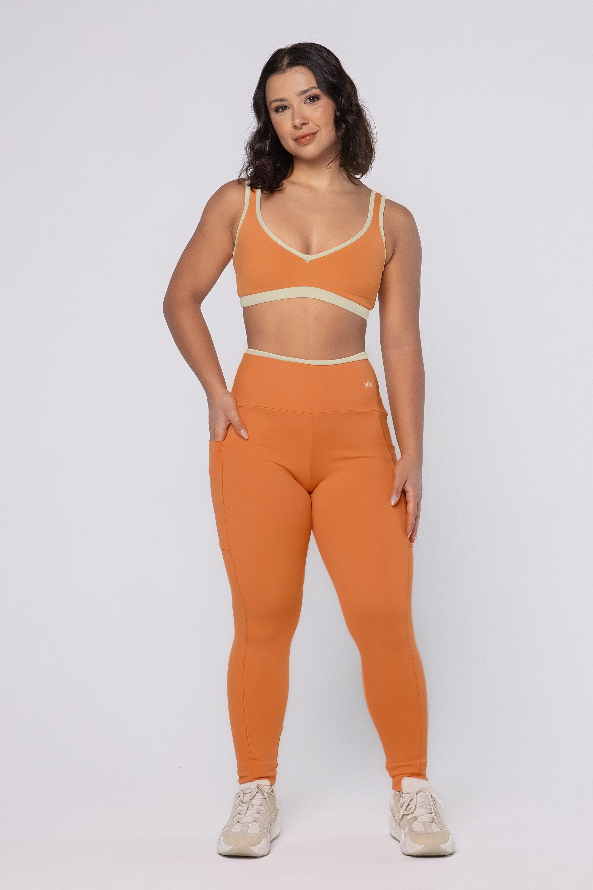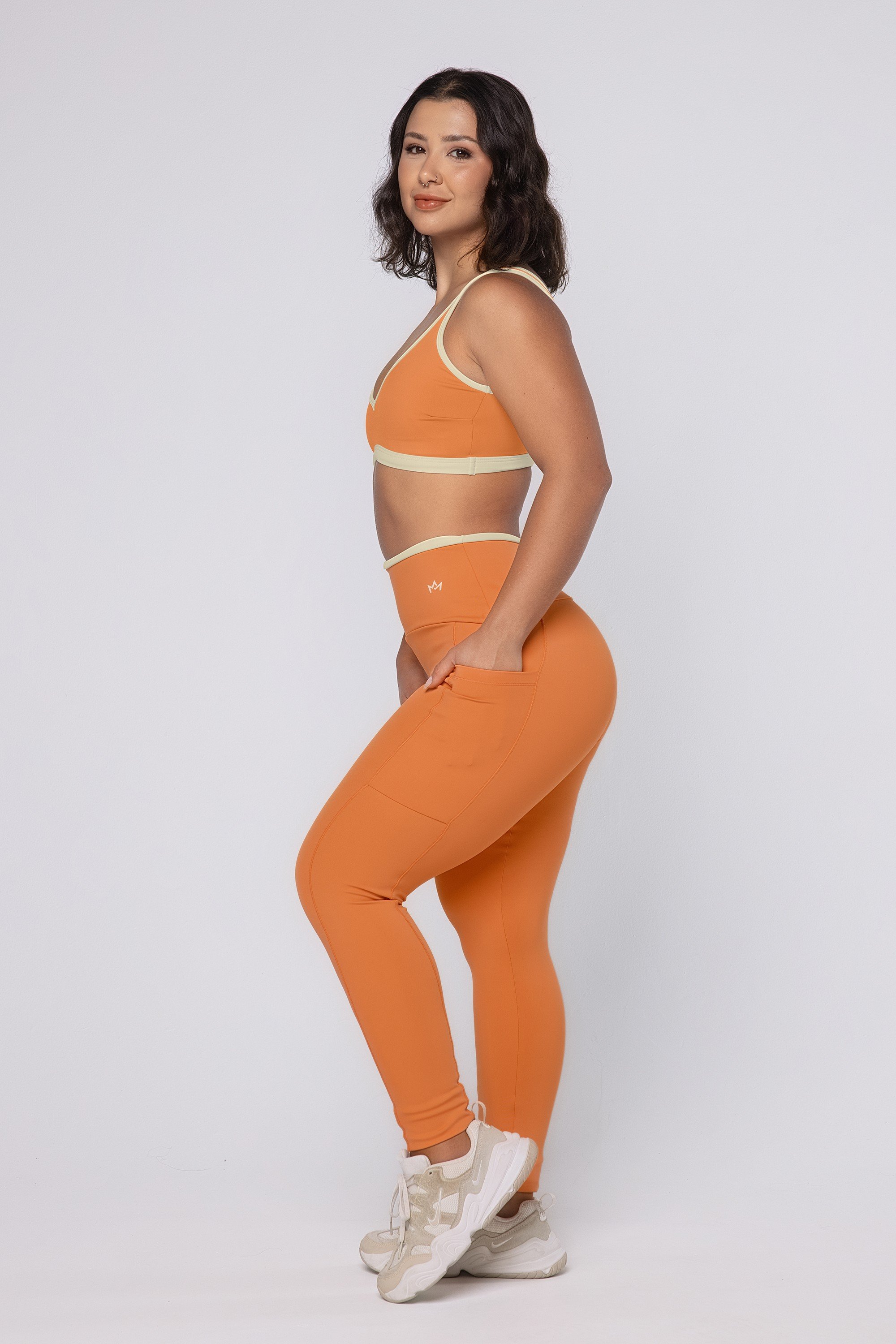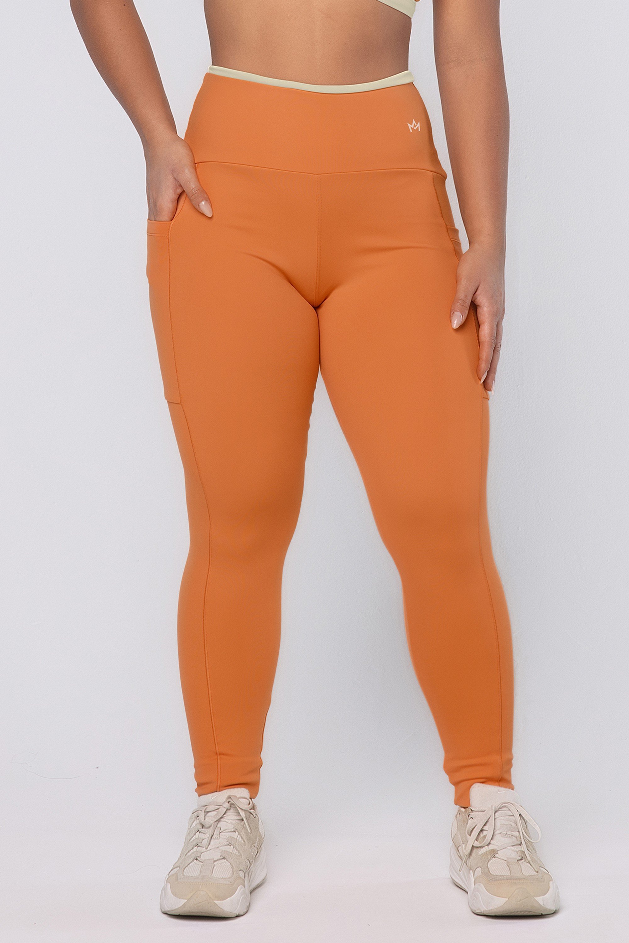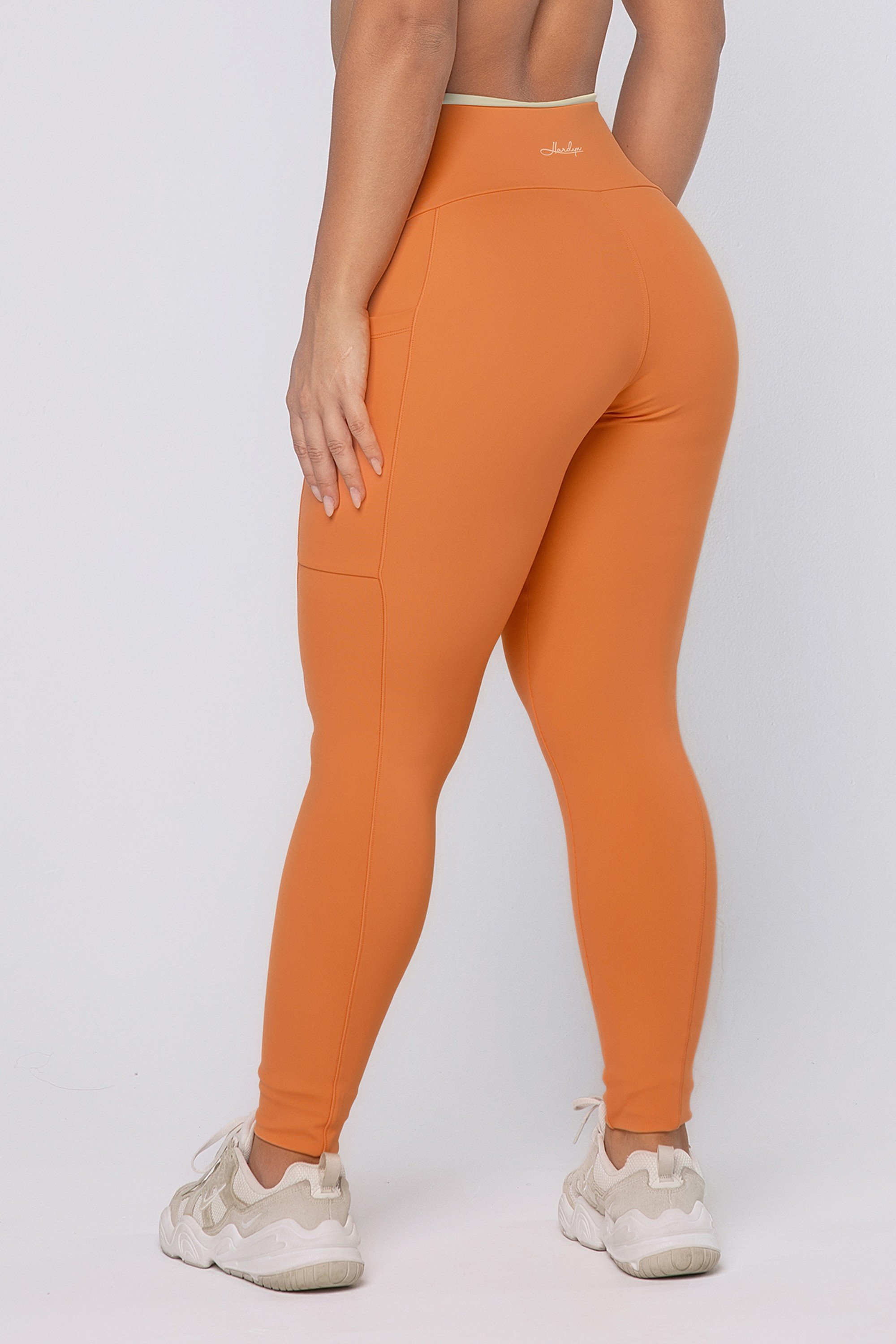 Protege a pele dos raios solares (UVA e UVB). Obs.: lembre-se: de usar protetor solar, a tecnologia não substitui o seu uso.LEGGING COM BOLSO BOOST LARANJA BRIGTH
