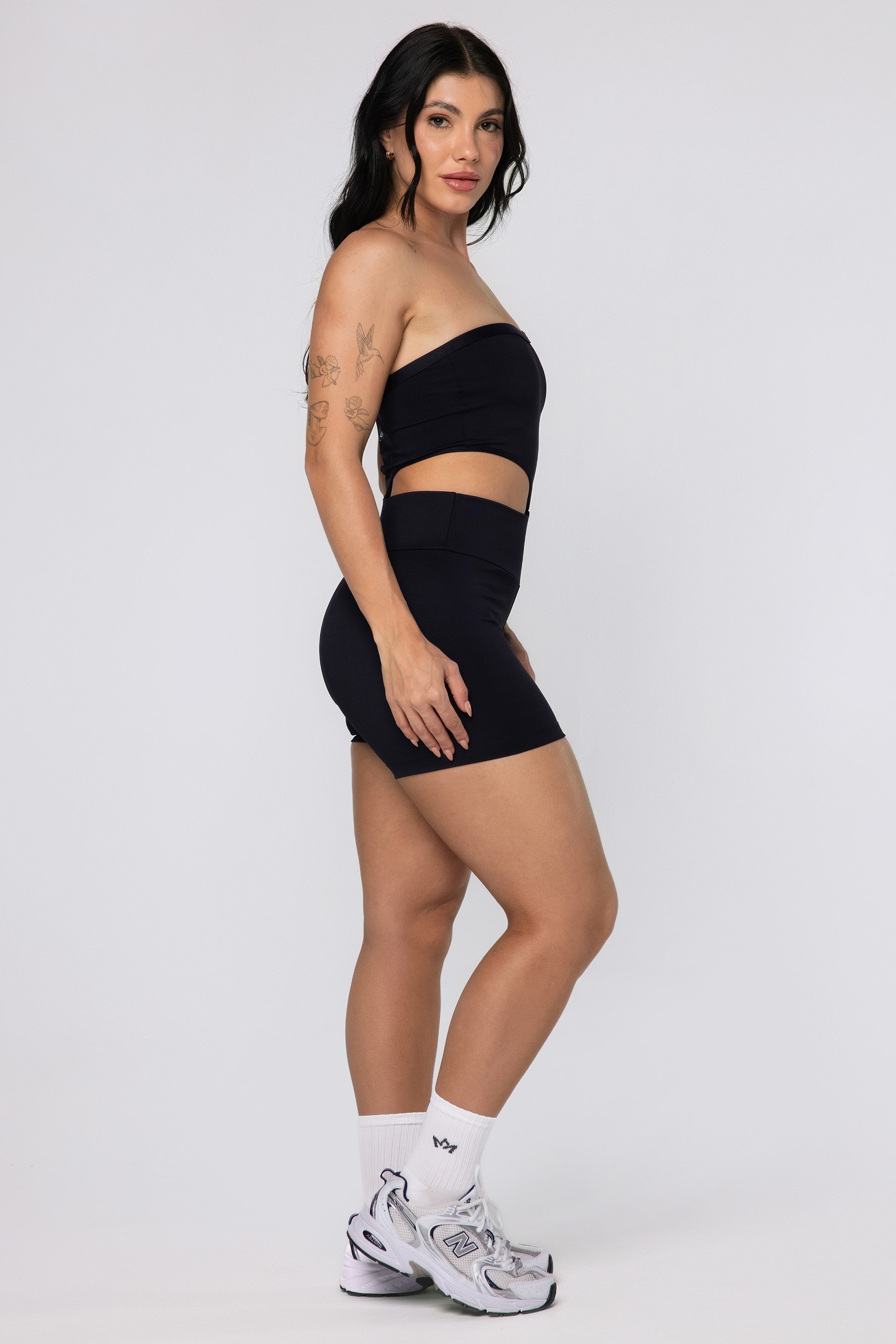 • Logo discreto nas coxa