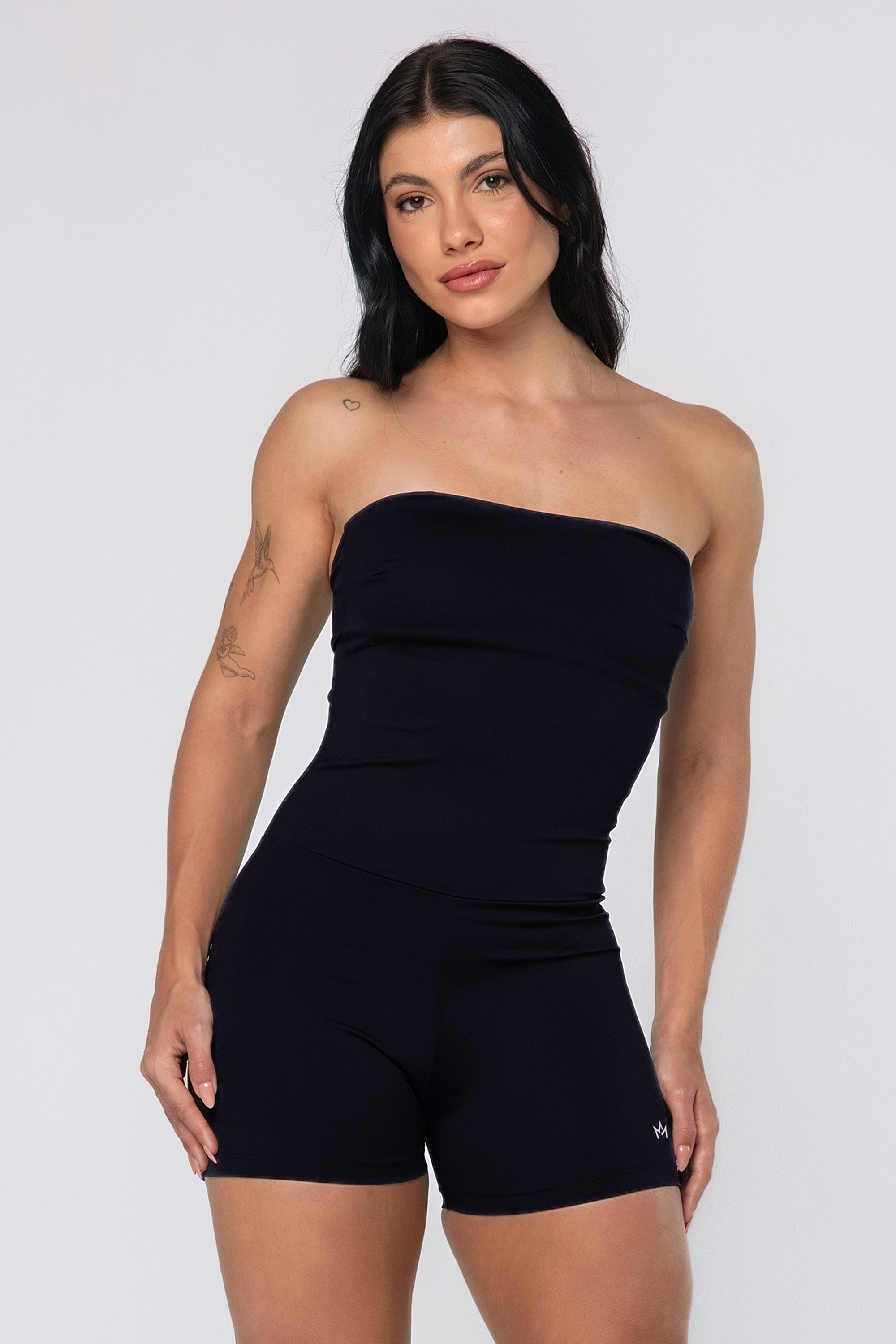 • Modelagem tomara que caia, com alças removíveis.