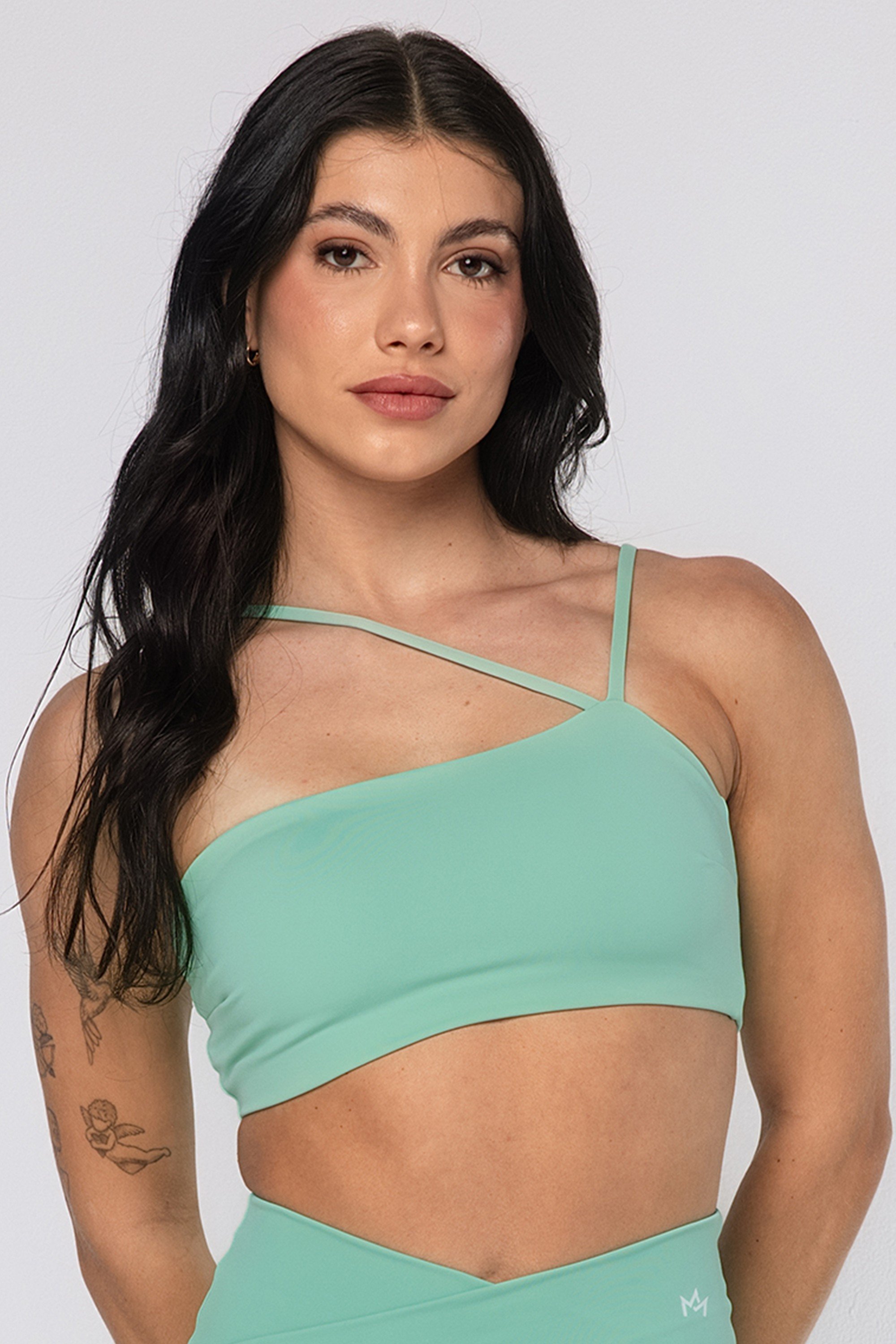 Protege a pele dos raios solares (UVA e UVB). Obs.: lembre-se: de usar protetor solar, a tecnologia não substitui o seu uso.TOP ASSIMÉTRICO BOOST VERDE MENTA