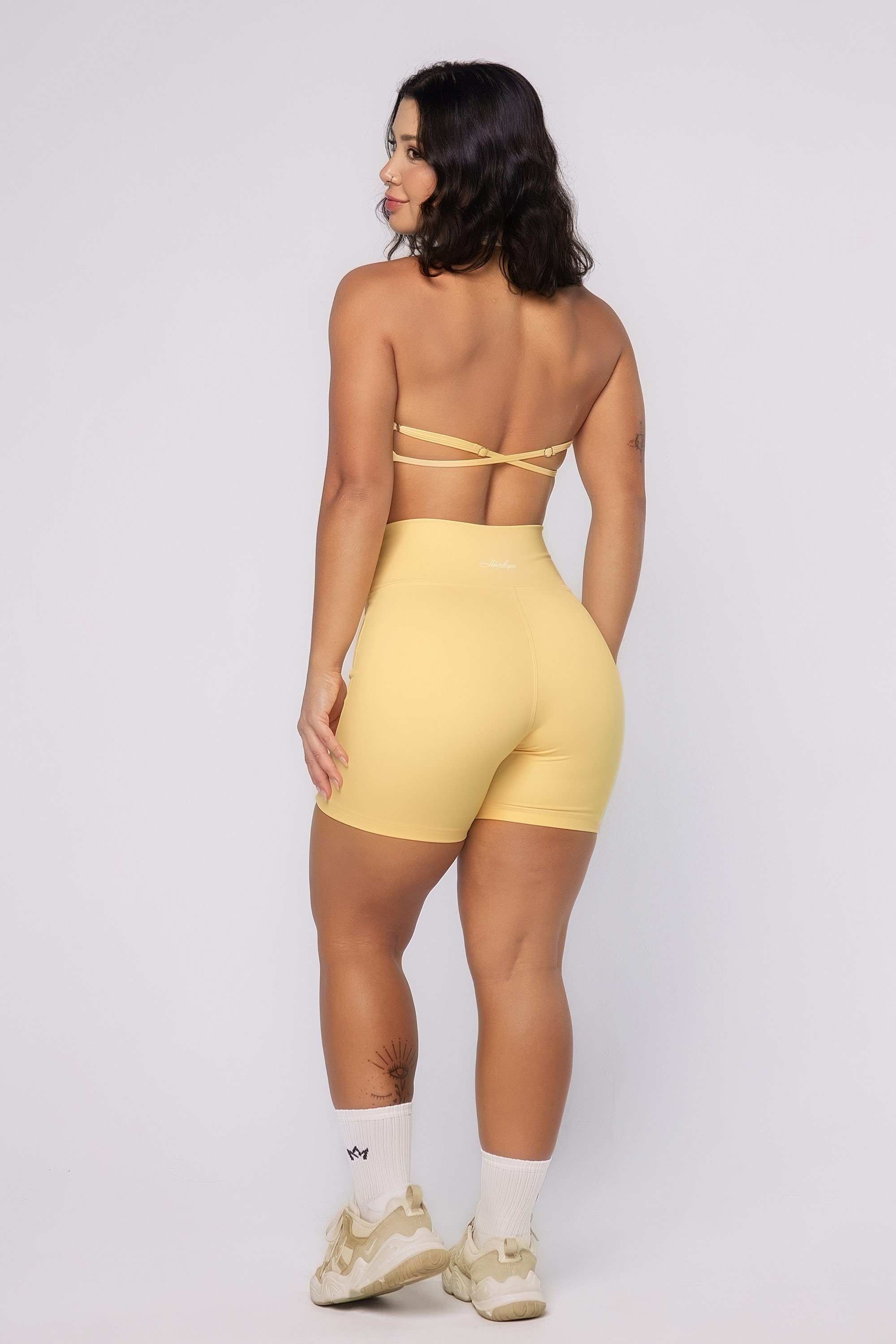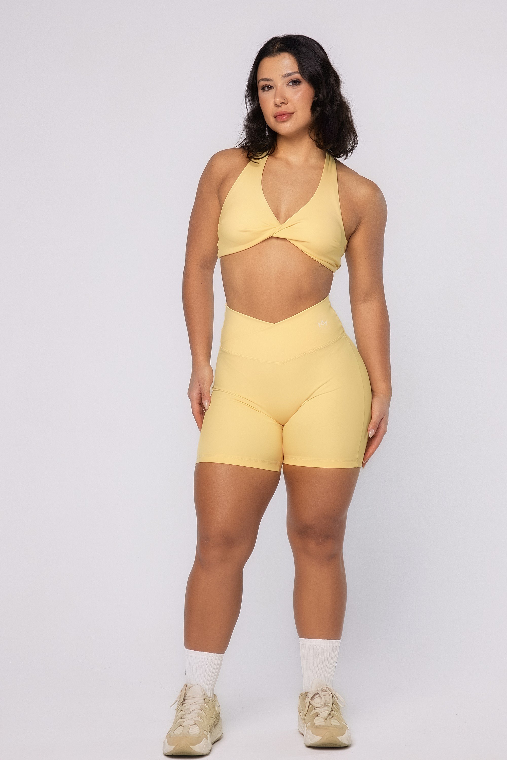 Protege a pele dos raios solares (UVA e UVB). Obs.: lembre-se: de usar protetor solar, a tecnologia não substitui o seu uso.TOP FRENTE ÚNICA DECOTE BOOST AMARELO MANTEIGA
