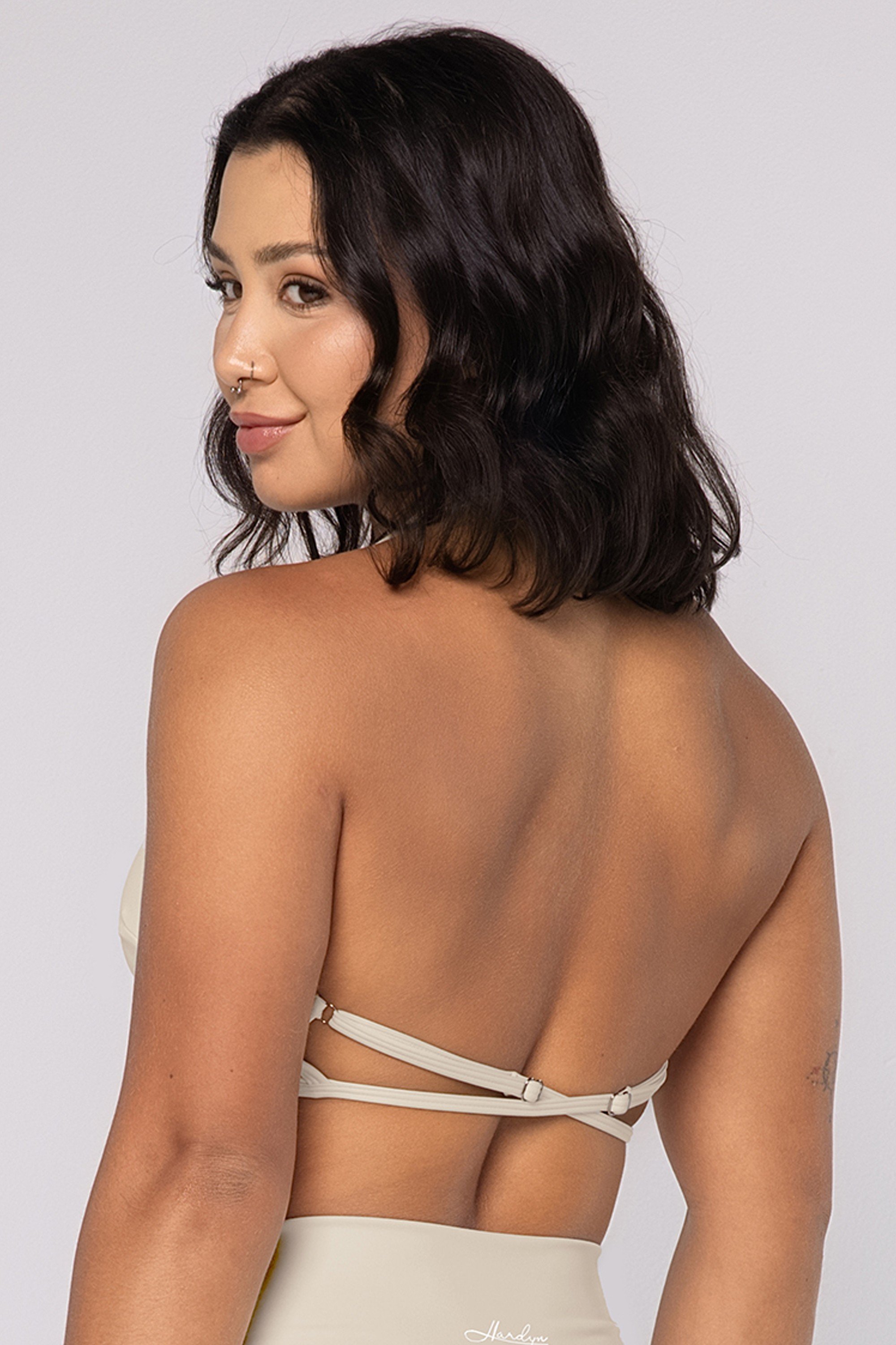 • Modelo frente única com tiras ajustáveis nas costas.