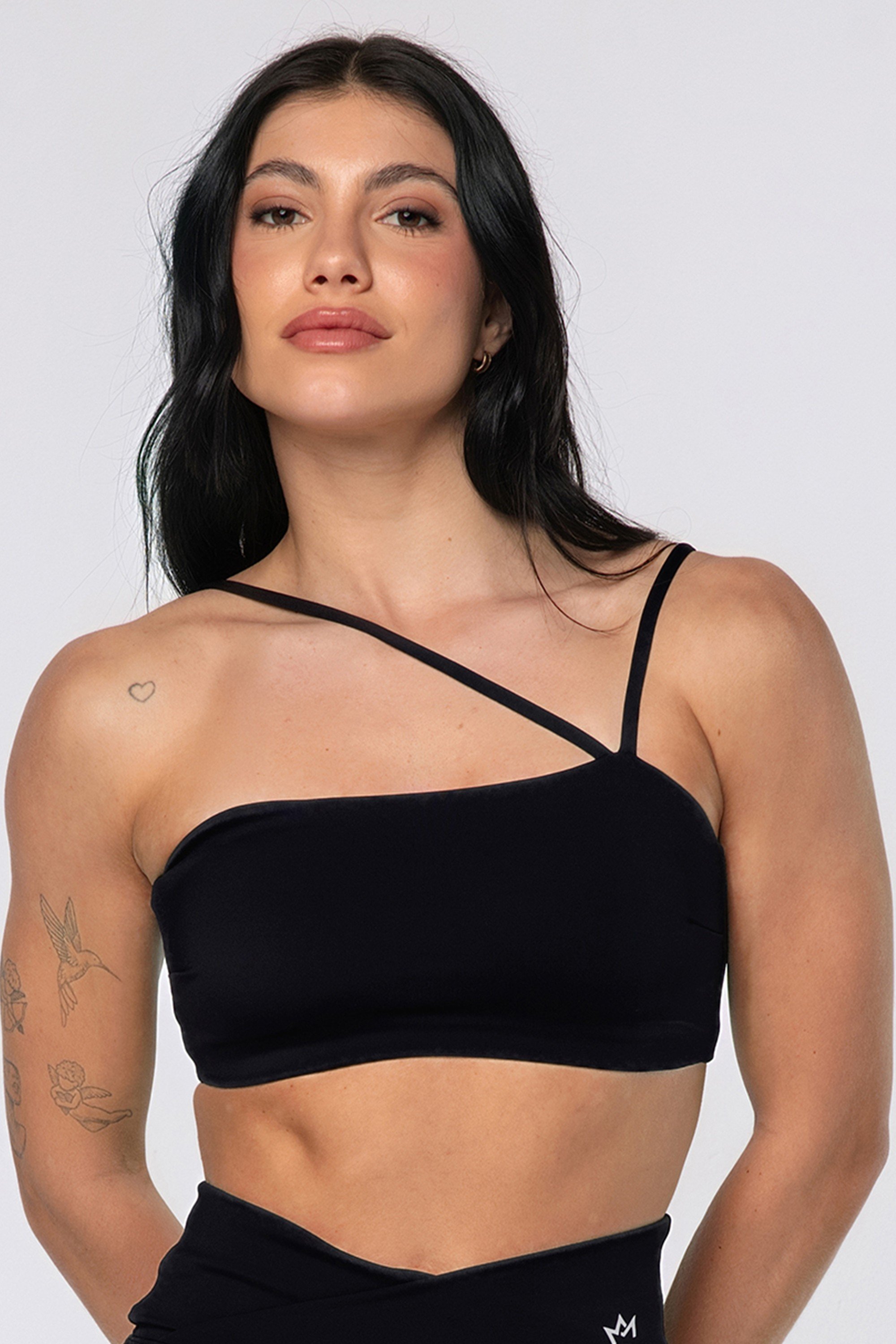 • Design Assimétrico que valoriza o busto e traz modernidade para seu look.