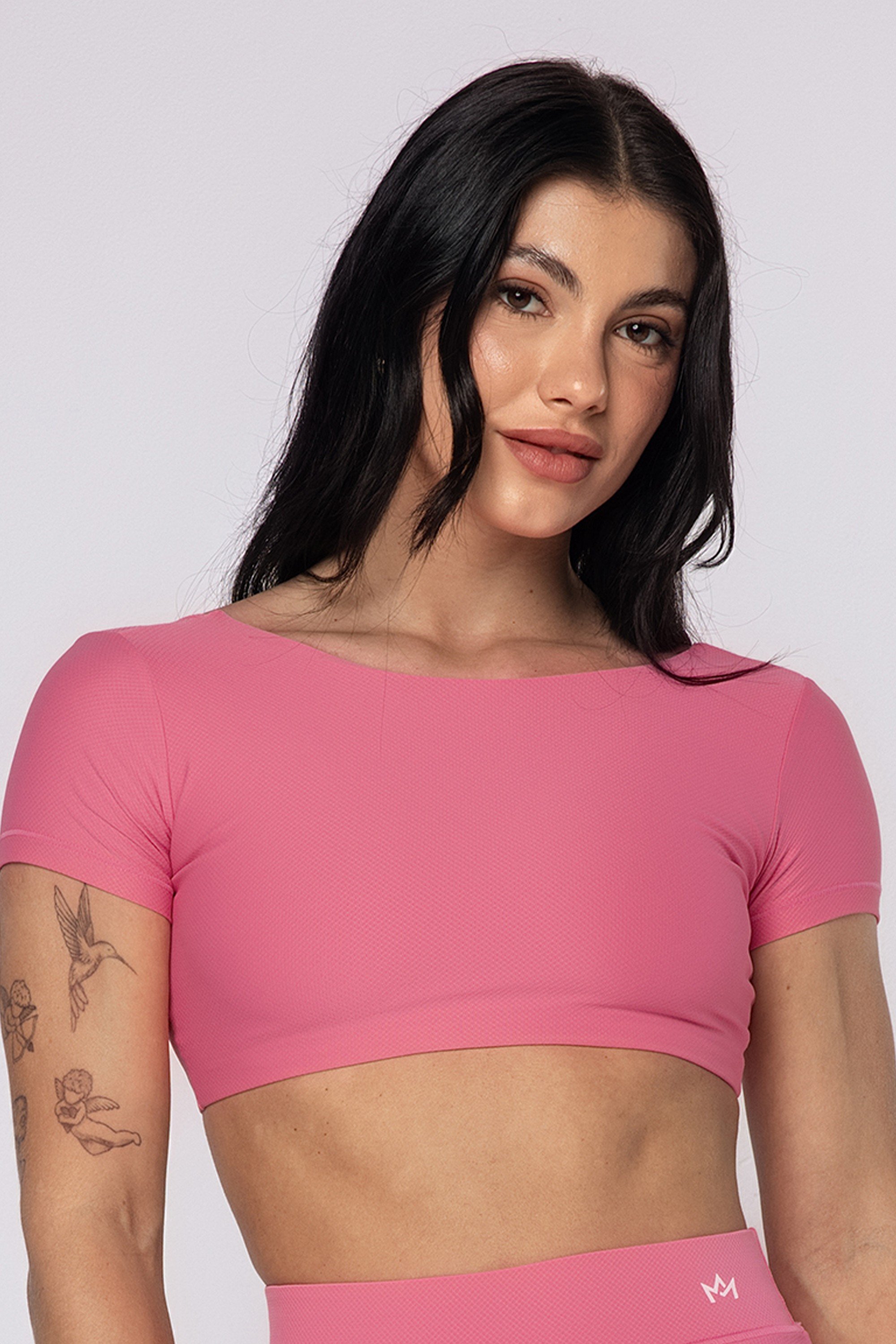 Transporta a umidade do suor pra parte externa do tecido para rápida evaporação, mantendo a leveza do tecido proporcionando mais conforto.CROPPED MANGA CURTA BOOST ROSA CHICLETE