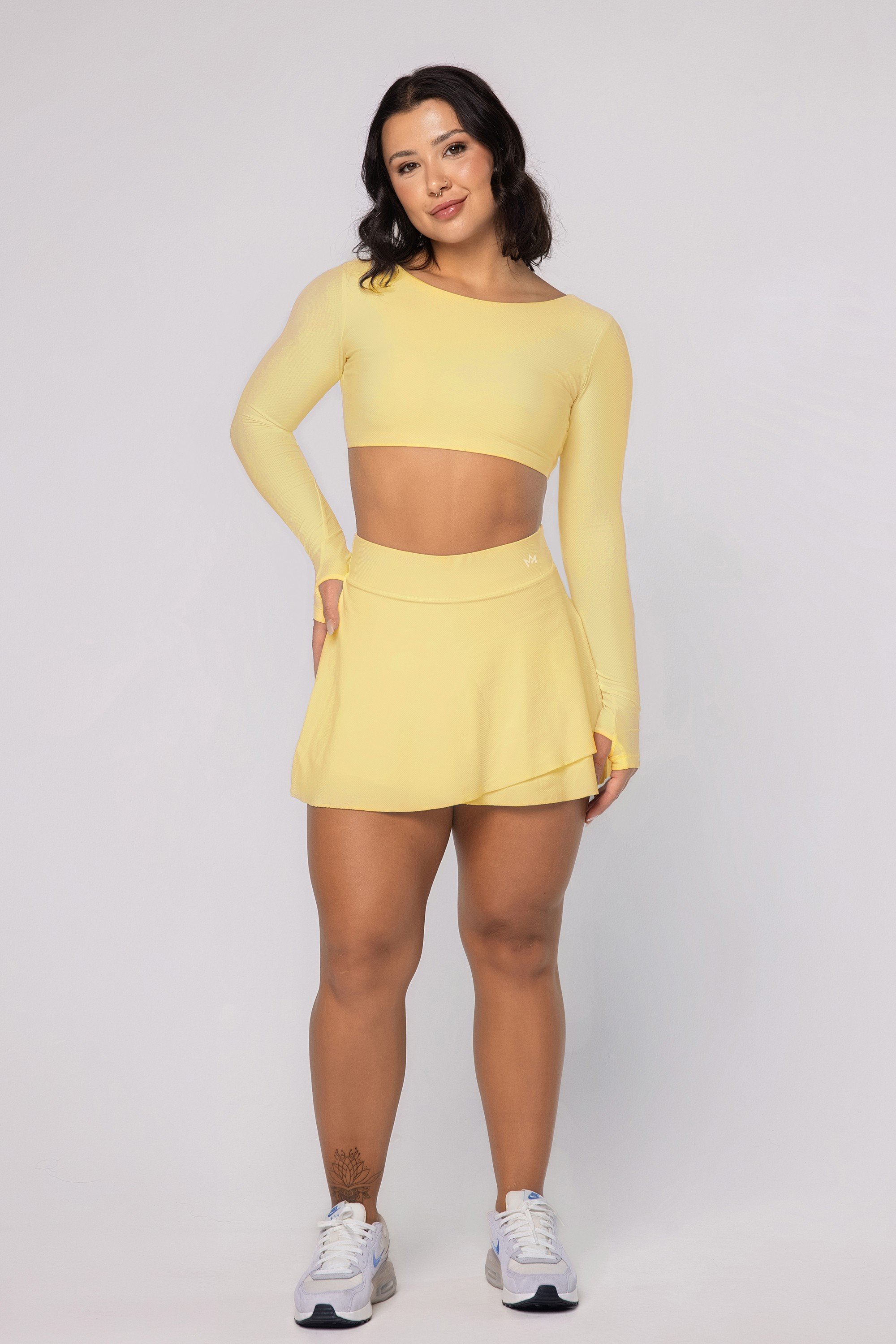 Transporta a umidade do suor pra parte externa do tecido para rápida evaporação, mantendo a leveza do tecido proporcionando mais conforto.CROPPED MANGA LONGA BOOST AMARELO MANTEIGA